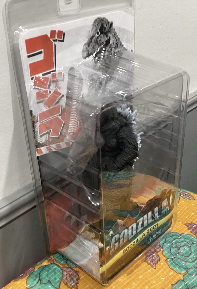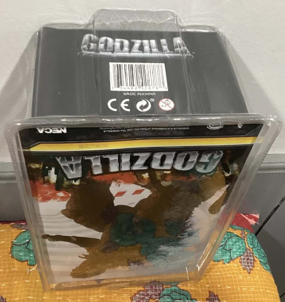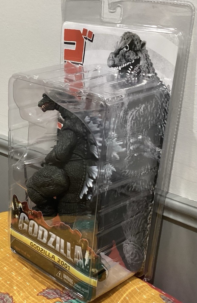 NECA's sealed Godzilla action figure brings the iconic monster from the modern movie classics to your collection. Crafted with precision, this 12-inch figure captures the intricate detailing and design that fans of the franchise have come to appreciate. Made from durable plastic, it stands ready for display or to recreate epic battles from the films. This particular Godzlla figure, a tribute to the 2001 cinematic release, is an original licensed reproduction, not a vintage item, and has not been signed. It is a must-have for collectors and enthusiasts of the Godzilla series, and it remains a sought-after item for those looking to complete their NECA collection. The packaging is in 8/10 really nice!