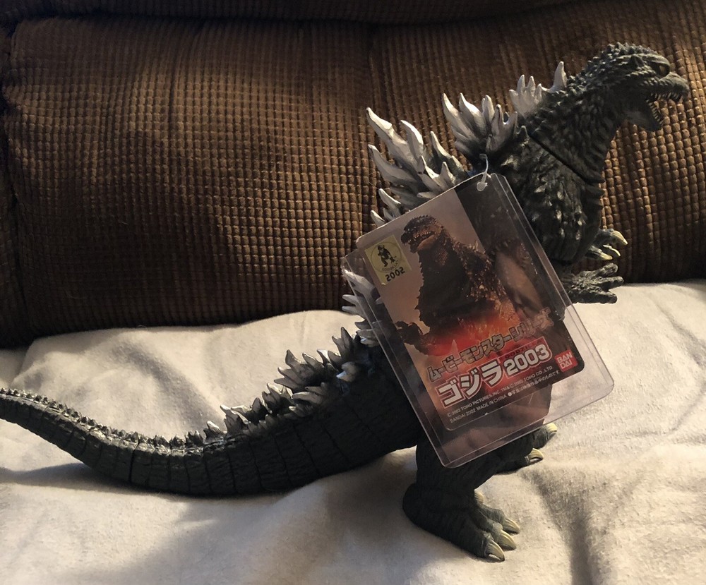 Mint condition with original tags. This is a 2002 Bandai Godzilla figure from the Tokyo SOS movie. The figure is 8.5 inches tall and comes with a tag. It is a regular edition and was made in Japan. The figure is suitable for children aged 3 and above.