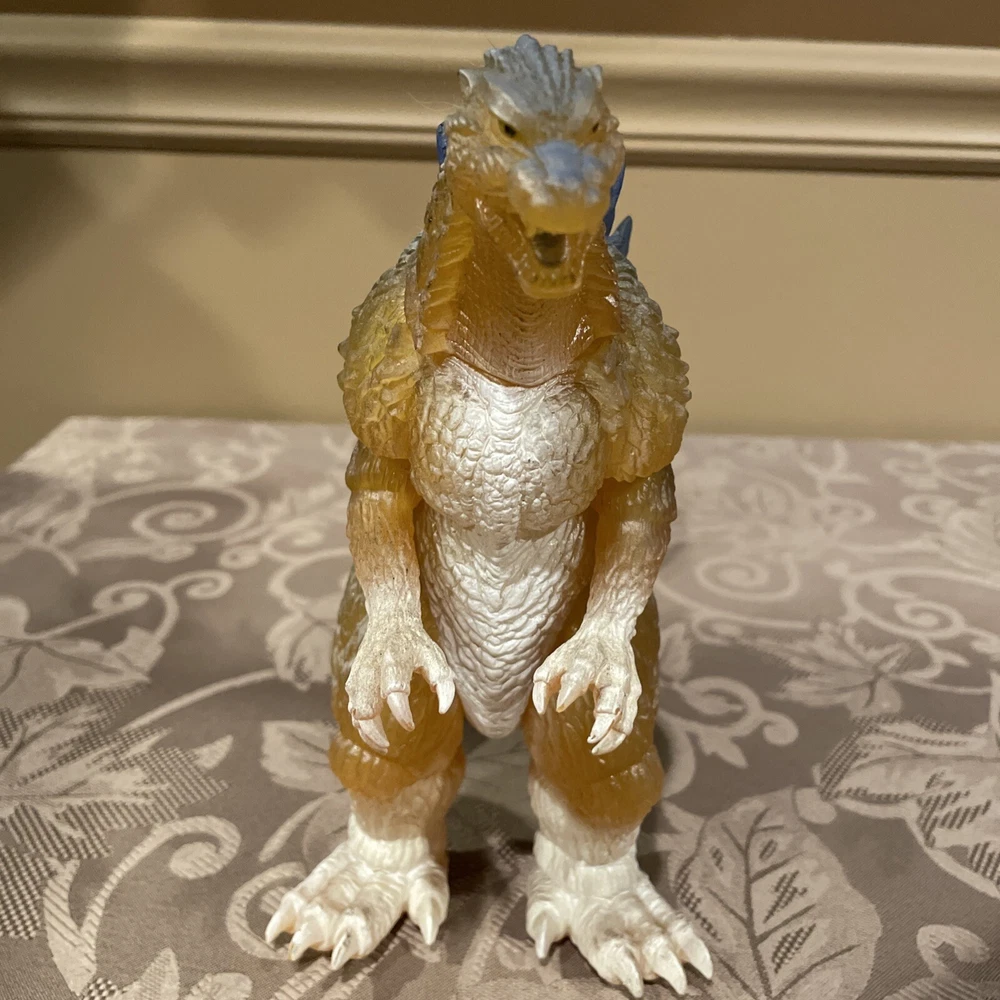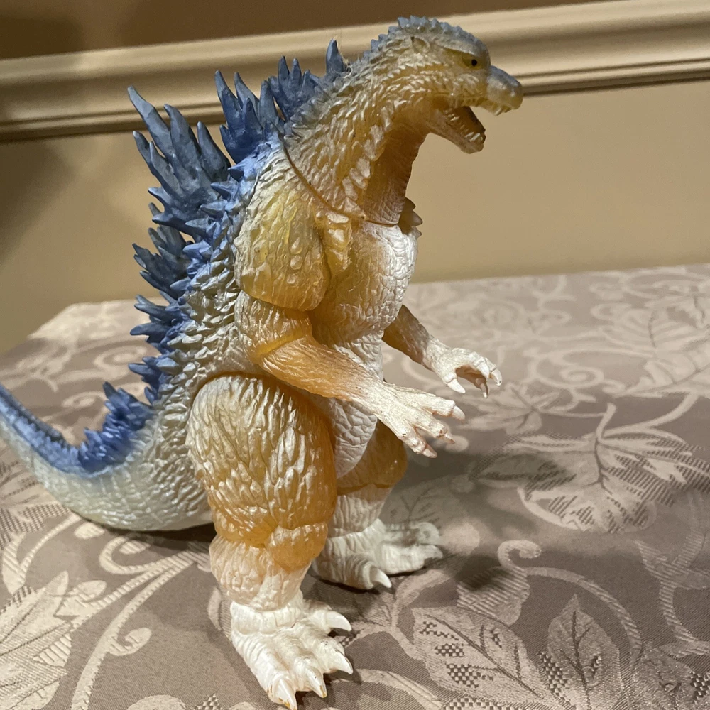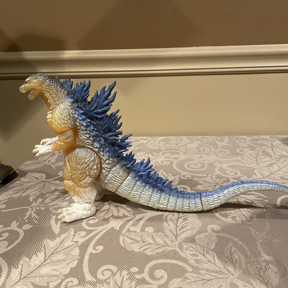 This is a rare and highly sought-after 2002 Bandai Theater Exclusive Toho Godzilla figure. Standing at 8.5 inches tall, this impressive collectible is perfect for any fan of the legendary monster. Its stunning blue and white color scheme is sure to make it a standout addition to any collection. Crafted with meticulous attention to detail, this Godzilla figure is a must-have for any serious collector. Its country of origin is China, and it features the iconic Godzilla theme. This collectible is in excellent shape and is ready to be displayed proudly in your home.