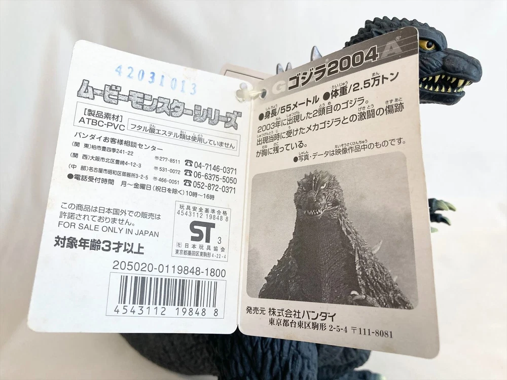 2003 Bandai 8.5 Inch Red Scar Chest Godzilla 2004 Figure with Tag Tokyo SOS Kaiju