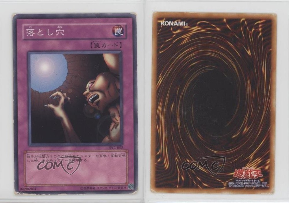 2003 Yu-Gi-Oh! Yugi - Structure Deck Volume 2 [Base] - Japanese #SY2-052 Trap Hole COMC Item: 184794611 - YuGiOh Card - Featuring Trap Hole Search for more: 2003 Yu-Gi-Oh! Yugi Search for more: 2003 Yu-Gi-Oh! Yugi - Structure Deck Volume 2 [Base] - Japanese View all of our Listings Auctions Buy It Now About Us Located in the beautiful Pacific Northwest, COMC (Check Out My Cards) is the world's largest consignment service for trading card singles. More than 10,000 people have used our consignment service to list over 50 million trading cards. Find out how we can help you consign your items on eBay by contacting us through eBay messaging. COMC -- "The Safe & Easy Way to Buy & Sell" Raw Condition for Modern Cards Unless otherwise noted, raw modern cards are listed in Near Mint-Mint condition or better. A NM-MT card appears to be Mint at first glance, but upon closer inspection, may exhibit some of the following: minor print defects (e.g. roller marks, print line, dimple), minor scratches, slight edge wear, and slight corner wear. Centering is clearly visible in the images provided and does not factor into our condition assessment. Raw Condition for Vintage Cards Unless otherwise noted, raw vintage cards are listed in Excellent condition or better. An EX card may exhibit some of the following: minor rounding of corners, surface wear, print defects, light scratches, and slight edge wear/chipping. Centering is clearly visible in the images provided and does not factor into our condition assessment. Domestic Shipping Combined shipping for multiple items is available. To receive combined shipping, please ensure all desired items are in your eBay shopping cart before proceeding to checkout. eBay limits orders to 40 items per order. We automatically combine multiple orders placed on the same day. If you place multiple orders on the same day, please contact us to request a refund of applicable shipping costs. Signature confirmation may be required on invoices over $400. All cards are protected and shipped securely. International Shipping COMC offers eBay's International Shipping (EIS) for international orders under $2,500* (see country exceptions below). All duties and import fees are paid at checkout; in the rare event that there are additional import fees upon delivery, these are borne by the buyer. EIS packages route through a shipping hub in Erlanger, KY before shipping to their final destination. Please note that EIS does not allow for combined shipments. The shipping rates are determined by eBay and cannot be adjusted. *Maximum sale price exceptions: Colombia, Kuwait ($2,000); Taiwan ($1,539); Chile, Costa Rica, Guatemala, Honduras, Trinidad and Tobago ($1,000); Antigua and Barbuda, Aruba, Belize, Dominica, Grenada, Philippines, Saint Kitts and Nevis, Saint Lucia, Montserrat, Turks and Caicos Islands ($500); Dominican Republic, El Salvador ($200). Please request a shipping quote through eBay messaging for orders that exceed the maximum sale price supported by eBay's International Shipping. You will be responsible for all duties and import fees for international orders shipped outside the EIS. All cards are protected and shipped securely. Payment COMC does not accept offers on our cards through our eBay storefront. COMC utilizes eBay’s managed payments system. If you are experiencing difficulties making a payment, please contact eBay for assistance. Return Policy Returns are only accepted on the rare occasion the item is not as described. If you are making a return, please initiate the return process through eBay so a mailing label can be provided for you. Prior to listing, our expert team carefully assessed this item to represent it accurately. Please review the description and high-definition images prior to purchasing to ensure this item meets your satisfaction. We welcome you to contact us if you have further questions about this item. Trust and Integrity COMC carefully assesses each item consigned to us to prevent fraudulent items from entering the marketplace. If you believe an item offered on COMC may be fraudulent, please contact us with details so we can investigate the issue. Items we determine are outside our supported items policy may be removed. Last Modified: 6/18/2025 11:32:31 AM PDT
