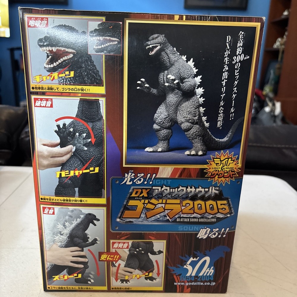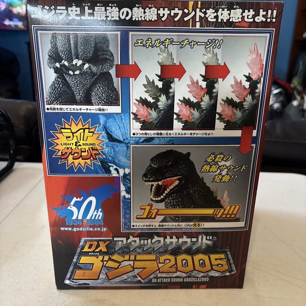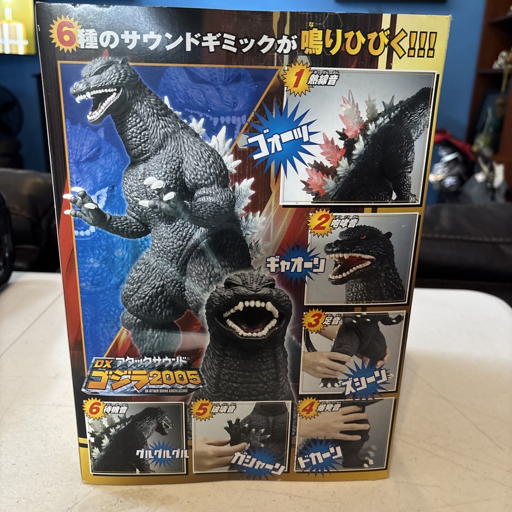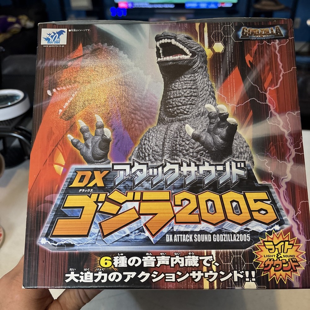 Godzilla still sealed new in box. Unable to verify if figure is in working condition, but considering still new, more than likely it is in great working condition The 2005 Bandai Godzilla Final Wars DX Sound Electronic toy is a collectible item from Japan. This Godzilla-themed toy features electronic sound effects, lights, and the iconic roar of the monster. It is in new condition and comes in its original packaging, making it a sought-after item for fans and collectors alike.