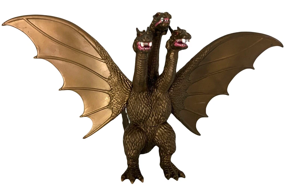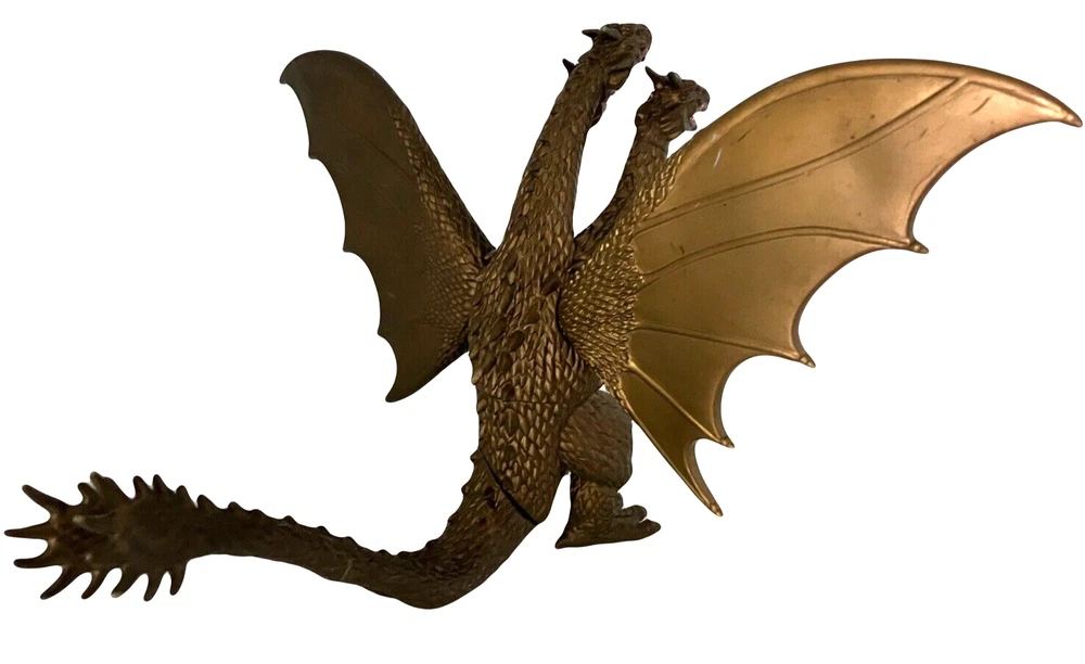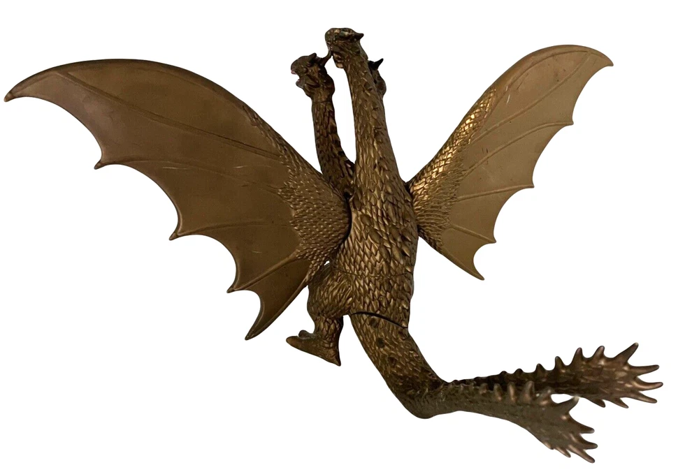 2005 Bandai Godzilla King Ghidorah 3-Headed Monster Flying Dragon Action Figure King Ghidorah, the 3-Headed, golden-scaled, giant, extraterrestrial Flying Dragon Monster, 2005 Toho Co, Ltd., Bandai, China action figure. In very good pre-owned condition with some light scratches, & what looks like some discoloration on the left wing. Moveable, articulated, poseable wings & double-ended tail. Approximately 6.75" tall x 11.5" wide x 10" deep. Please look at all the pictures as additional description. Comes from a smoke free environment. - Brand: Toho Co Ltd., Bandai China - Year: 2005 - Articulated collectible sci-fi/fantasy figurine - Moveable/poseable wings & tail - Approx. 6.75" tall x 11.5" wide x 10" deep - Vinyl, plastic - Will be box shipped to prevent crushing - The last picture is for your enjoyment only & not of the actual figure ** PLEASE NOTE: We want you to be completely satisfied & confident with your purchase & with your shopping experience with us. We do not accept returns for collectible items so please feel free to ask us questions, ask for more pictures, etc. to ensure that you are purchasing exactly what you want. Thank you for your understanding, we greatly appreciate all of our customers. ** All Fur Love, TN., Private FOREVER Home Dog Rescue SHIPPING: - FAST shipping within 24 to 48 hours of payment - We will gladly bundle items to save on shipping for you - just send us a message please Thank you for visiting our store. WE WISH YOU A HEALTHY & HAPPY DAY :) ** We urge you to contact us with any questions, concerns, etc. We conscientiously strive to impart OUTSTANDING customer service and high quality merchandise. We are (young) senior resellers who support our private dog rescue, "ALL FUR LOVE, TN". Your purchase and satisfaction allow us to continue to provide a FOREVER, loving, safe home for many wonderful, needy souls. THANK YOU **