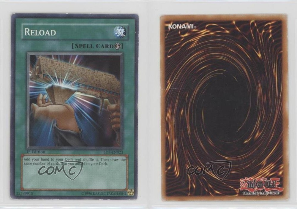 2005 Yu-Gi-Oh! Blaze of Destruction - Structure Deck [Base] - 1st Edition #SD3-EN023 Reload COMC Item: 162453313 - YuGiOh Card - Featuring Reload Search for more: 2005 Yu-Gi-Oh! Blaze of Destruction Search for more: 2005 Yu-Gi-Oh! Blaze of Destruction - Structure Deck [Base] - 1st Edition View all of our Listings Auctions Buy It Now About Us Located in the beautiful Pacific Northwest, COMC (Check Out My Cards) is the world's largest consignment service for trading card singles. More than 10,000 people have used our consignment service to list over 50 million trading cards. Find out how we can help you consign your items on eBay by contacting us through eBay messaging. COMC -- "The Safe & Easy Way to Buy & Sell" Raw Condition for Modern Cards Unless otherwise noted, raw modern cards are listed in Near Mint-Mint condition or better. A NM-MT card appears to be Mint at first glance, but upon closer inspection, may exhibit some of the following: minor print defects (e.g. roller marks, print line, dimple), minor scratches, slight edge wear, and slight corner wear. Centering is clearly visible in the images provided and does not factor into our condition assessment. Raw Condition for Vintage Cards Unless otherwise noted, raw vintage cards are listed in Excellent condition or better. An EX card may exhibit some of the following: minor rounding of corners, surface wear, print defects, light scratches, and slight edge wear/chipping. Centering is clearly visible in the images provided and does not factor into our condition assessment. Domestic Shipping Combined shipping for multiple items is available. To receive combined shipping, please ensure all desired items are in your eBay shopping cart before proceeding to checkout. eBay limits orders to 40 items per order. We automatically combine multiple orders placed on the same day. If you place multiple orders on the same day, please contact us to request a refund of applicable shipping costs. Signature confirmation may be required on invoices over $400. All cards are protected and shipped securely. International Shipping COMC offers eBay's International Shipping (EIS) for international orders under $2,500* (see country exceptions below). All duties and import fees are paid at checkout; in the rare event that there are additional import fees upon delivery, these are borne by the buyer. EIS packages route through a shipping hub in Erlanger, KY before shipping to their final destination. Please note that EIS does not allow for combined shipments. The shipping rates are determined by eBay and cannot be adjusted. *Maximum sale price exceptions: Colombia, Kuwait ($2,000); Taiwan ($1,539); Chile, Costa Rica, Guatemala, Honduras, Trinidad and Tobago ($1,000); Antigua and Barbuda, Aruba, Belize, Dominica, Grenada, Philippines, Saint Kitts and Nevis, Saint Lucia, Montserrat, Turks and Caicos Islands ($500); Dominican Republic, El Salvador ($200). Please request a shipping quote through eBay messaging for orders that exceed the maximum sale price supported by eBay's International Shipping. You will be responsible for all duties and import fees for international orders shipped outside the EIS. All cards are protected and shipped securely. Payment COMC does not accept offers on our cards through our eBay storefront. COMC utilizes eBay’s managed payments system. If you are experiencing difficulties making a payment, please contact eBay for assistance. Return Policy Returns are only accepted on the rare occasion the item is not as described. If you are making a return, please initiate the return process through eBay so a mailing label can be provided for you. Prior to listing, our expert team carefully assessed this item to represent it accurately. Please review the description and high-definition images prior to purchasing to ensure this item meets your satisfaction. We welcome you to contact us if you have further questions about this item. Trust and Integrity COMC carefully assesses each item consigned to us to prevent fraudulent items from entering the marketplace. If you believe an item offered on COMC may be fraudulent, please contact us with details so we can investigate the issue. Items we determine are outside our supported items policy may be removed. Last Modified: 6/14/2025 9:32:07 PM PDT