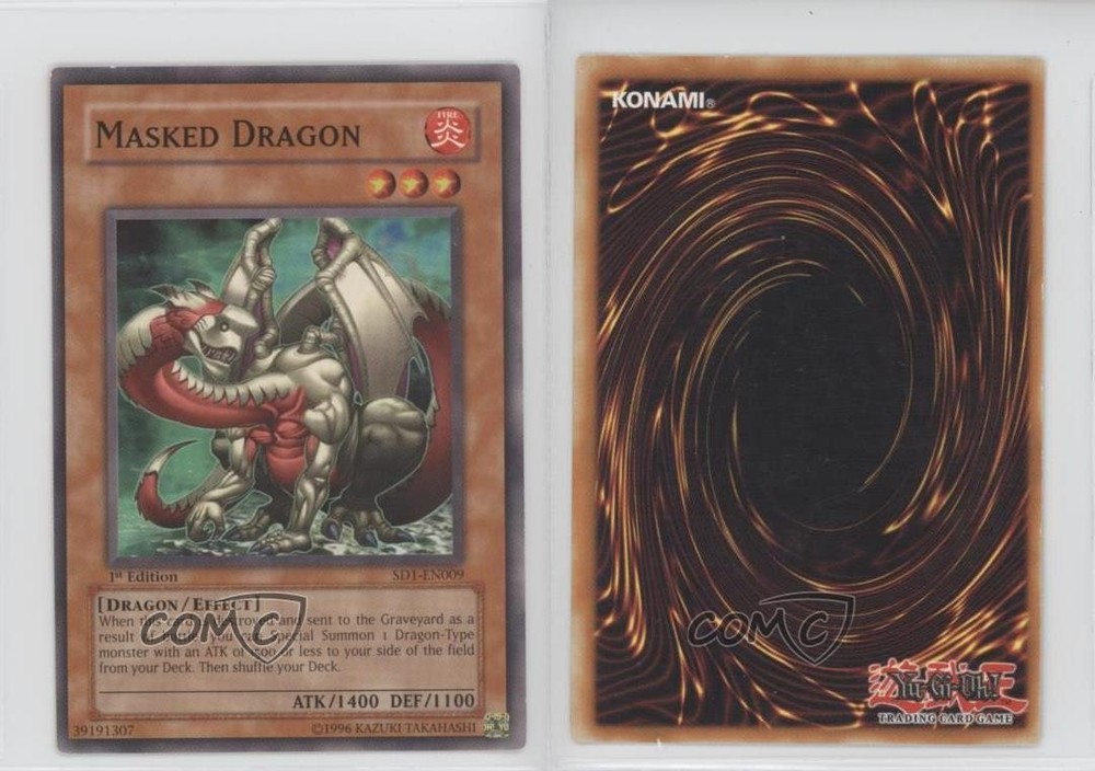 2005 Yu-Gi-Oh! Dragon's Roar - Structure Deck [Base] - 1st Edition #SD1-EN009 Masked Dragon COMC Item: 45547597 - YuGiOh Card - Featuring Masked Dragon Search for more: 2005 Yu-Gi-Oh! Dragon's Roar Search for more: 2005 Yu-Gi-Oh! Dragon's Roar - Structure Deck [Base] - 1st Edition View all of our Listings Auctions Buy It Now About Us Located in the beautiful Pacific Northwest, COMC (Check Out My Cards) is the world's largest consignment service for trading card singles. More than 10,000 people have used our consignment service to list over 50 million trading cards. Find out how we can help you consign your items on eBay by contacting us through eBay messaging. COMC -- "The Safe & Easy Way to Buy & Sell" Raw Condition for Modern Cards Unless otherwise noted, raw modern cards are listed in Near Mint-Mint condition or better. A NM-MT card appears to be Mint at first glance, but upon closer inspection, may exhibit some of the following: minor print defects (e.g. roller marks, print line, dimple), minor scratches, slight edge wear, and slight corner wear. Centering is clearly visible in the images provided and does not factor into our condition assessment. Raw Condition for Vintage Cards Unless otherwise noted, raw vintage cards are listed in Excellent condition or better. An EX card may exhibit some of the following: minor rounding of corners, surface wear, print defects, light scratches, and slight edge wear/chipping. Centering is clearly visible in the images provided and does not factor into our condition assessment. Domestic Shipping Combined shipping for multiple items is available. To receive combined shipping, please ensure all desired items are in your eBay shopping cart before proceeding to checkout. eBay limits orders to 40 items per order. We automatically combine multiple orders placed on the same day. If you place multiple orders on the same day, please contact us to request a refund of applicable shipping costs. Signature confirmation may be required on invoices over $400. All cards are protected and shipped securely. International Shipping COMC offers eBay's International Shipping (EIS) for international orders under $2,500* (see country exceptions below). All duties and import fees are paid at checkout; in the rare event that there are additional import fees upon delivery, these are borne by the buyer. EIS packages route through a shipping hub in Erlanger, KY before shipping to their final destination. Please note that EIS does not allow for combined shipments. The shipping rates are determined by eBay and cannot be adjusted. *Maximum sale price exceptions: Colombia, Kuwait ($2,000); Taiwan ($1,539); Chile, Costa Rica, Guatemala, Honduras, Trinidad and Tobago ($1,000); Antigua and Barbuda, Aruba, Belize, Dominica, Grenada, Philippines, Saint Kitts and Nevis, Saint Lucia, Montserrat, Turks and Caicos Islands ($500); Dominican Republic, El Salvador ($200). Please request a shipping quote through eBay messaging for orders that exceed the maximum sale price supported by eBay's International Shipping. You will be responsible for all duties and import fees for international orders shipped outside the EIS. All cards are protected and shipped securely. Payment COMC does not accept offers on our cards through our eBay storefront. COMC utilizes eBay’s managed payments system. If you are experiencing difficulties making a payment, please contact eBay for assistance. Return Policy Returns are only accepted on the rare occasion the item is not as described. If you are making a return, please initiate the return process through eBay so a mailing label can be provided for you. Prior to listing, our expert team carefully assessed this item to represent it accurately. Please review the description and high-definition images prior to purchasing to ensure this item meets your satisfaction. We welcome you to contact us if you have further questions about this item. Trust and Integrity COMC carefully assesses each item consigned to us to prevent fraudulent items from entering the marketplace. If you believe an item offered on COMC may be fraudulent, please contact us with details so we can investigate the issue. Items we determine are outside our supported items policy may be removed. Last Modified: 5/18/2025 4:16:06 PM PDT