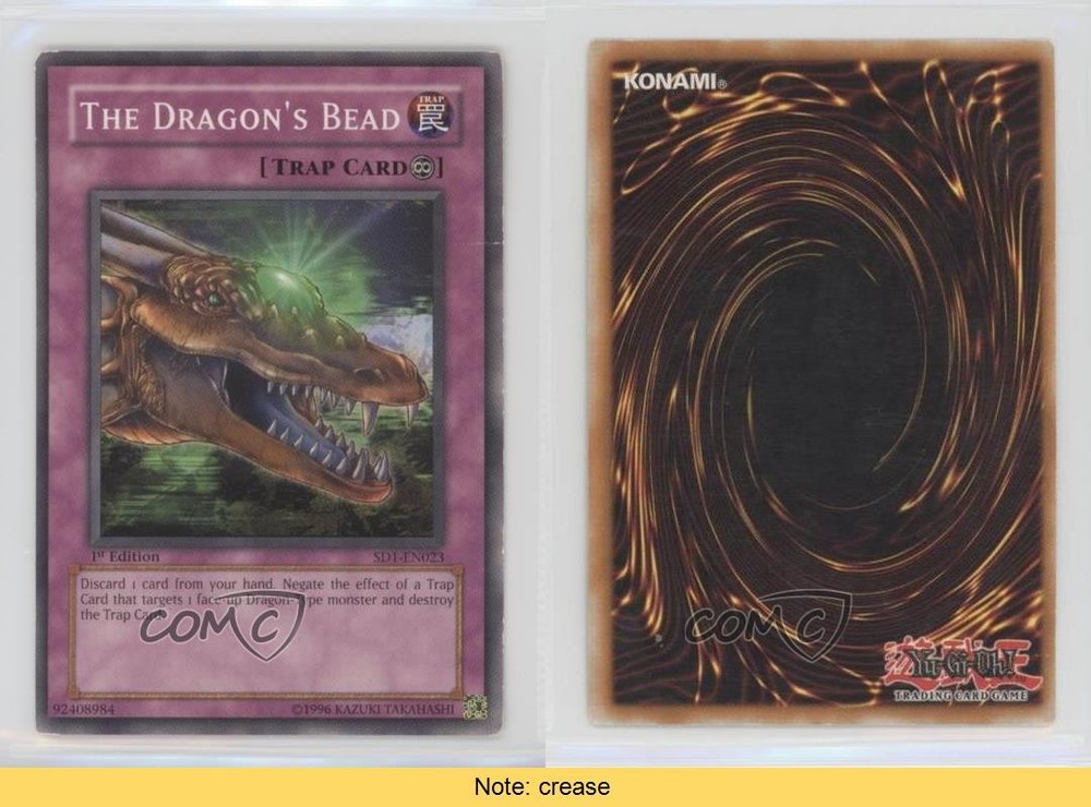 2005 Yu-Gi-Oh! Dragon's Roar - Structure Deck [Base] - 1st Edition #SD1-EN023 The Dragon's Bead COMC Item: 29598718 CONDITION NOTE: crease - YuGiOh Card - Featuring The Dragon's Bead Search for more: 2005 Yu-Gi-Oh! Dragon's Roar Search for more: 2005 Yu-Gi-Oh! Dragon's Roar - Structure Deck [Base] - 1st Edition View all of our Listings Auctions Buy It Now About Us Located in the beautiful Pacific Northwest, COMC (Check Out My Cards) is the world's largest consignment service for trading card singles. More than 10,000 people have used our consignment service to list over 50 million trading cards. Find out how we can help you consign your items on eBay by contacting us through eBay messaging. COMC -- "The Safe & Easy Way to Buy & Sell" Raw Condition for Modern Cards Unless otherwise noted, raw modern cards are listed in Near Mint-Mint condition or better. A NM-MT card appears to be Mint at first glance, but upon closer inspection, may exhibit some of the following: minor print defects (e.g. roller marks, print line, dimple), minor scratches, slight edge wear, and slight corner wear. Centering is clearly visible in the images provided and does not factor into our condition assessment. Raw Condition for Vintage Cards Unless otherwise noted, raw vintage cards are listed in Excellent condition or better. An EX card may exhibit some of the following: minor rounding of corners, surface wear, print defects, light scratches, and slight edge wear/chipping. Centering is clearly visible in the images provided and does not factor into our condition assessment. Domestic Shipping Combined shipping for multiple items is available. To receive combined shipping, please ensure all desired items are in your eBay shopping cart before proceeding to checkout. eBay limits orders to 40 items per order. We automatically combine multiple orders placed on the same day. If you place multiple orders on the same day, please contact us to request a refund of applicable shipping costs. Signature confirmation may be required on invoices over $400. All cards are protected and shipped securely. International Shipping COMC offers eBay's International Shipping (EIS) for international orders under $2,500* (see country exceptions below). All duties and import fees are paid at checkout; in the rare event that there are additional import fees upon delivery, these are borne by the buyer. EIS packages route through a shipping hub in Erlanger, KY before shipping to their final destination. Please note that EIS does not allow for combined shipments. The shipping rates are determined by eBay and cannot be adjusted. *Maximum sale price exceptions: Colombia, Kuwait ($2,000); Taiwan ($1,539); Chile, Costa Rica, Guatemala, Honduras, Trinidad and Tobago ($1,000); Antigua and Barbuda, Aruba, Belize, Dominica, Grenada, Philippines, Saint Kitts and Nevis, Saint Lucia, Montserrat, Turks and Caicos Islands ($500); Dominican Republic, El Salvador ($200). Please request a shipping quote through eBay messaging for orders that exceed the maximum sale price supported by eBay's International Shipping. You will be responsible for all duties and import fees for international orders shipped outside the EIS. All cards are protected and shipped securely. Payment COMC does not accept offers on our cards through our eBay storefront. COMC utilizes eBay’s managed payments system. If you are experiencing difficulties making a payment, please contact eBay for assistance. Return Policy Returns are only accepted on the rare occasion the item is not as described. If you are making a return, please initiate the return process through eBay so a mailing label can be provided for you. Prior to listing, our expert team carefully assessed this item to represent it accurately. Please review the description and high-definition images prior to purchasing to ensure this item meets your satisfaction. We welcome you to contact us if you have further questions about this item. Trust and Integrity COMC carefully assesses each item consigned to us to prevent fraudulent items from entering the marketplace. If you believe an item offered on COMC may be fraudulent, please contact us with details so we can investigate the issue. Items we determine are outside our supported items policy may be removed. Last Modified: 6/6/2025 7:51:32 PM PDT