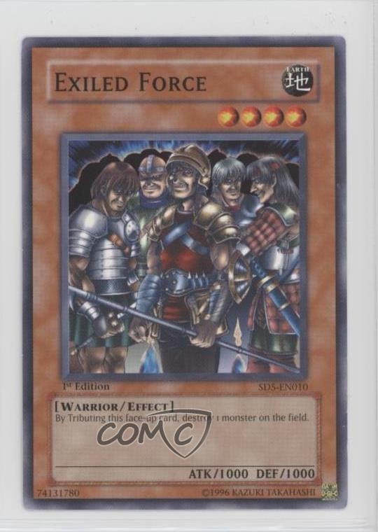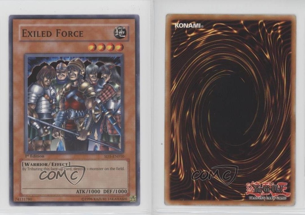 2005 Yu-Gi-Oh! Warrior's Triumph - Structure Deck [Base] - 1st Edition #SD5-EN010 Exiled Force COMC Item: 195580867 - YuGiOh Card - Featuring Exiled Force Search for more: 2005 Yu-Gi-Oh! Warrior's Triumph Search for more: 2005 Yu-Gi-Oh! Warrior's Triumph - Structure Deck [Base] - 1st Edition View all of our Listings Auctions Buy It Now About Us Located in the beautiful Pacific Northwest, COMC (Check Out My Cards) is the world's largest consignment service for trading card singles. More than 10,000 people have used our consignment service to list over 50 million trading cards. Find out how we can help you consign your items on eBay by contacting us through eBay messaging. COMC -- "The Safe & Easy Way to Buy & Sell" Raw Condition for Modern Cards Unless otherwise noted, raw modern cards are listed in Near Mint-Mint condition or better. A NM-MT card appears to be Mint at first glance, but upon closer inspection, may exhibit some of the following: minor print defects (e.g. roller marks, print line, dimple), minor scratches, slight edge wear, and slight corner wear. Centering is clearly visible in the images provided and does not factor into our condition assessment. Raw Condition for Vintage Cards Unless otherwise noted, raw vintage cards are listed in Excellent condition or better. An EX card may exhibit some of the following: minor rounding of corners, surface wear, print defects, light scratches, and slight edge wear/chipping. Centering is clearly visible in the images provided and does not factor into our condition assessment. Domestic Shipping Combined shipping for multiple items is available. To receive combined shipping, please ensure all desired items are in your eBay shopping cart before proceeding to checkout. eBay limits orders to 40 items per order. We automatically combine multiple orders placed on the same day. If you place multiple orders on the same day, please contact us to request a refund of applicable shipping costs. Signature confirmation may be required on invoices over $400. All cards are protected and shipped securely. International Shipping COMC offers eBay's International Shipping (EIS) for international orders under $2,500* (see country exceptions below). All duties and import fees are paid at checkout; in the rare event that there are additional import fees upon delivery, these are borne by the buyer. EIS packages route through a shipping hub in Erlanger, KY before shipping to their final destination. Please note that EIS does not allow for combined shipments. The shipping rates are determined by eBay and cannot be adjusted. *Maximum sale price exceptions: Colombia, Kuwait ($2,000); Taiwan ($1,539); Chile, Costa Rica, Guatemala, Honduras, Trinidad and Tobago ($1,000); Antigua and Barbuda, Aruba, Belize, Dominica, Grenada, Philippines, Saint Kitts and Nevis, Saint Lucia, Montserrat, Turks and Caicos Islands ($500); Dominican Republic, El Salvador ($200). Please request a shipping quote through eBay messaging for orders that exceed the maximum sale price supported by eBay's International Shipping. You will be responsible for all duties and import fees for international orders shipped outside the EIS. All cards are protected and shipped securely. Payment COMC does not accept offers on our cards through our eBay storefront. COMC utilizes eBay’s managed payments system. If you are experiencing difficulties making a payment, please contact eBay for assistance. Return Policy Returns are only accepted on the rare occasion the item is not as described. If you are making a return, please initiate the return process through eBay so a mailing label can be provided for you. Prior to listing, our expert team carefully assessed this item to represent it accurately. Please review the description and high-definition images prior to purchasing to ensure this item meets your satisfaction. We welcome you to contact us if you have further questions about this item. Trust and Integrity COMC carefully assesses each item consigned to us to prevent fraudulent items from entering the marketplace. If you believe an item offered on COMC may be fraudulent, please contact us with details so we can investigate the issue. Items we determine are outside our supported items policy may be removed. Last Modified: 6/16/2025 11:40:01 PM PDT