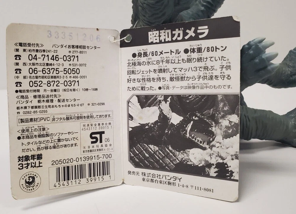 This is the 2006 6" Movie Monster Series -STANDARD- Showa G AMERA 1965 vinyl figure with tag by Bandai Japan with tag. From Gamera the Giant Monster (1965). Condition is "Used". Please examine photos for condition. Shipping options are USPS Ground Advantage (default) and USPS Priority Mail.