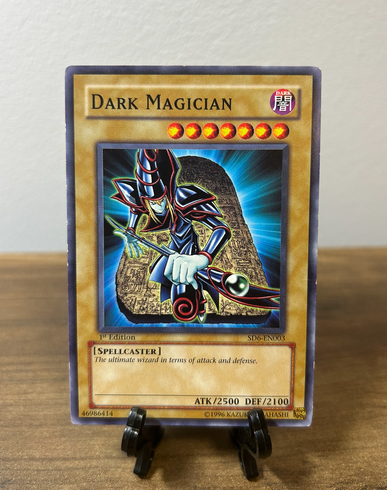 1st Edition Dark Magician card from the 2006 Yu-Gi-Oh Spellcaster’s Judgment deck (SD6-EN003) This card is in a LIGHTLY PLAYED condition. Please refer to pictures. All cards are shipped inside a penny sleeve, top loader, and standard envelope.