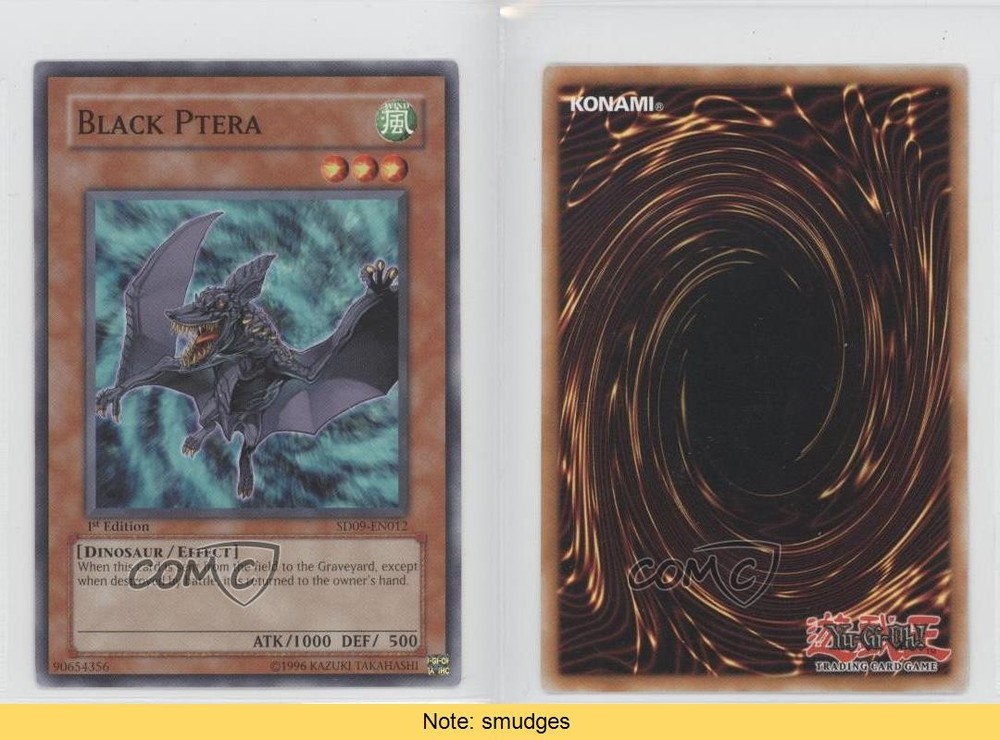 2006 Yu-Gi-Oh! Dinosaur's Rage - Structure Deck [Base] - 1st Edition #SD09-EN012 Black Ptera COMC Item: 25707560 CONDITION NOTE: smudges - YuGiOh Card - Featuring Black Ptera Search for more: 2006 Yu-Gi-Oh! Dinosaur's Rage Search for more: 2006 Yu-Gi-Oh! Dinosaur's Rage - Structure Deck [Base] - 1st Edition View all of our Listings Auctions Buy It Now About Us Located in the beautiful Pacific Northwest, COMC (Check Out My Cards) is the world's largest consignment service for trading card singles. More than 10,000 people have used our consignment service to list over 50 million trading cards. Find out how we can help you consign your items on eBay by contacting us through eBay messaging. COMC -- "The Safe & Easy Way to Buy & Sell" Raw Condition for Modern Cards Unless otherwise noted, raw modern cards are listed in Near Mint-Mint condition or better. A NM-MT card appears to be Mint at first glance, but upon closer inspection, may exhibit some of the following: minor print defects (e.g. roller marks, print line, dimple), minor scratches, slight edge wear, and slight corner wear. Centering is clearly visible in the images provided and does not factor into our condition assessment. Raw Condition for Vintage Cards Unless otherwise noted, raw vintage cards are listed in Excellent condition or better. An EX card may exhibit some of the following: minor rounding of corners, surface wear, print defects, light scratches, and slight edge wear/chipping. Centering is clearly visible in the images provided and does not factor into our condition assessment. Domestic Shipping Combined shipping for multiple items is available. To receive combined shipping, please ensure all desired items are in your eBay shopping cart before proceeding to checkout. eBay limits orders to 40 items per order. We automatically combine multiple orders placed on the same day. If you place multiple orders on the same day, please contact us to request a refund of applicable shipping costs. Signature confirmation may be required on invoices over $400. All cards are protected and shipped securely. International Shipping COMC offers eBay's International Shipping (EIS) for international orders under $2,500* (see country exceptions below). All duties and import fees are paid at checkout; in the rare event that there are additional import fees upon delivery, these are borne by the buyer. EIS packages route through a shipping hub in Erlanger, KY before shipping to their final destination. Please note that EIS does not allow for combined shipments. The shipping rates are determined by eBay and cannot be adjusted. *Maximum sale price exceptions: Colombia, Kuwait ($2,000); Taiwan ($1,539); Chile, Costa Rica, Guatemala, Honduras, Trinidad and Tobago ($1,000); Antigua and Barbuda, Aruba, Belize, Dominica, Grenada, Philippines, Saint Kitts and Nevis, Saint Lucia, Montserrat, Turks and Caicos Islands ($500); Dominican Republic, El Salvador ($200). Please request a shipping quote through eBay messaging for orders that exceed the maximum sale price supported by eBay's International Shipping. You will be responsible for all duties and import fees for international orders shipped outside the EIS. All cards are protected and shipped securely. Payment COMC does not accept offers on our cards through our eBay storefront. COMC utilizes eBay’s managed payments system. If you are experiencing difficulties making a payment, please contact eBay for assistance. Return Policy Returns are only accepted on the rare occasion the item is not as described. If you are making a return, please initiate the return process through eBay so a mailing label can be provided for you. Prior to listing, our expert team carefully assessed this item to represent it accurately. Please review the description and high-definition images prior to purchasing to ensure this item meets your satisfaction. We welcome you to contact us if you have further questions about this item. Trust and Integrity COMC carefully assesses each item consigned to us to prevent fraudulent items from entering the marketplace. If you believe an item offered on COMC may be fraudulent, please contact us with details so we can investigate the issue. Items we determine are outside our supported items policy may be removed. Last Modified: 6/14/2025 8:36:33 PM PDT