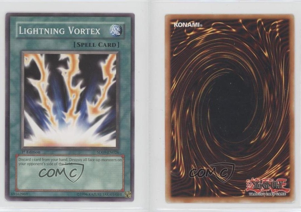 2006 Yu-Gi-Oh! Dinosaur's Rage - Structure Deck [Base] - 1st Edition #SD09-EN026 Lightning Vortex COMC Item: 175267204 - YuGiOh Card - Featuring Lightning Vortex Search for more: 2006 Yu-Gi-Oh! Dinosaur's Rage Search for more: 2006 Yu-Gi-Oh! Dinosaur's Rage - Structure Deck [Base] - 1st Edition View all of our Listings Auctions Buy It Now About Us Located in the beautiful Pacific Northwest, COMC (Check Out My Cards) is the world's largest consignment service for trading card singles. More than 10,000 people have used our consignment service to list over 50 million trading cards. Find out how we can help you consign your items on eBay by contacting us through eBay messaging. COMC -- "The Safe & Easy Way to Buy & Sell" Raw Condition for Modern Cards Unless otherwise noted, raw modern cards are listed in Near Mint-Mint condition or better. A NM-MT card appears to be Mint at first glance, but upon closer inspection, may exhibit some of the following: minor print defects (e.g. roller marks, print line, dimple), minor scratches, slight edge wear, and slight corner wear. Centering is clearly visible in the images provided and does not factor into our condition assessment. Raw Condition for Vintage Cards Unless otherwise noted, raw vintage cards are listed in Excellent condition or better. An EX card may exhibit some of the following: minor rounding of corners, surface wear, print defects, light scratches, and slight edge wear/chipping. Centering is clearly visible in the images provided and does not factor into our condition assessment. Domestic Shipping Combined shipping for multiple items is available. To receive combined shipping, please ensure all desired items are in your eBay shopping cart before proceeding to checkout. eBay limits orders to 40 items per order. We automatically combine multiple orders placed on the same day. If you place multiple orders on the same day, please contact us to request a refund of applicable shipping costs. Signature confirmation may be required on invoices over $400. All cards are protected and shipped securely. International Shipping COMC offers eBay's International Shipping (EIS) for international orders under $2,500* (see country exceptions below). All duties and import fees are paid at checkout; in the rare event that there are additional import fees upon delivery, these are borne by the buyer. EIS packages route through a shipping hub in Erlanger, KY before shipping to their final destination. Please note that EIS does not allow for combined shipments. The shipping rates are determined by eBay and cannot be adjusted. *Maximum sale price exceptions: Colombia, Kuwait ($2,000); Taiwan ($1,539); Chile, Costa Rica, Guatemala, Honduras, Trinidad and Tobago ($1,000); Antigua and Barbuda, Aruba, Belize, Dominica, Grenada, Philippines, Saint Kitts and Nevis, Saint Lucia, Montserrat, Turks and Caicos Islands ($500); Dominican Republic, El Salvador ($200). Please request a shipping quote through eBay messaging for orders that exceed the maximum sale price supported by eBay's International Shipping. You will be responsible for all duties and import fees for international orders shipped outside the EIS. All cards are protected and shipped securely. Payment COMC does not accept offers on our cards through our eBay storefront. COMC utilizes eBay’s managed payments system. If you are experiencing difficulties making a payment, please contact eBay for assistance. Return Policy Returns are only accepted on the rare occasion the item is not as described. If you are making a return, please initiate the return process through eBay so a mailing label can be provided for you. Prior to listing, our expert team carefully assessed this item to represent it accurately. Please review the description and high-definition images prior to purchasing to ensure this item meets your satisfaction. We welcome you to contact us if you have further questions about this item. Trust and Integrity COMC carefully assesses each item consigned to us to prevent fraudulent items from entering the marketplace. If you believe an item offered on COMC may be fraudulent, please contact us with details so we can investigate the issue. Items we determine are outside our supported items policy may be removed. Last Modified: 6/14/2025 8:50:18 PM PDT