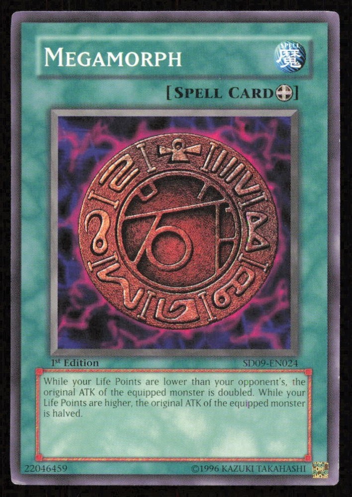 | Card Text | While your Life Points are lower than your opponent's, the original ATK of the equipped monster is doubled. While your Life Points are higher, the original ATK of the equipped monster is halved. |