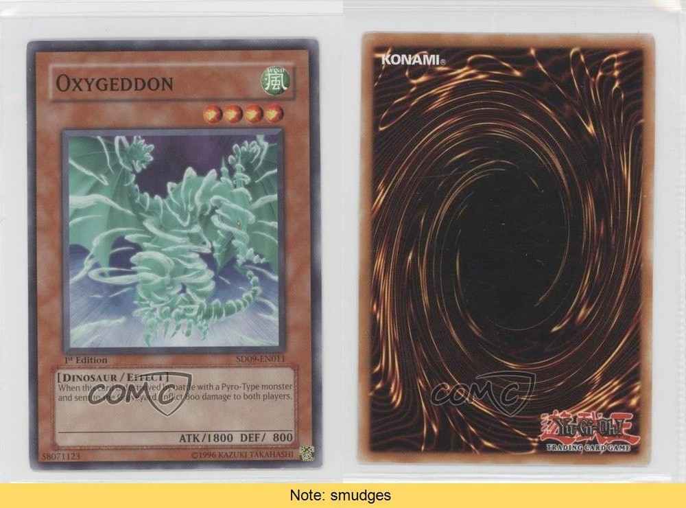 2006 Yu-Gi-Oh! Dinosaur's Rage - Structure Deck [Base] - 1st Edition #SD09-EN011 Oxygeddon COMC Item: 25707530 CONDITION NOTE: smudges - YuGiOh Card - Featuring Oxygeddon Search for more: 2006 Yu-Gi-Oh! Dinosaur's Rage Search for more: 2006 Yu-Gi-Oh! Dinosaur's Rage - Structure Deck [Base] - 1st Edition View all of our Listings Auctions Buy It Now About Us Located in the beautiful Pacific Northwest, COMC (Check Out My Cards) is the world's largest consignment service for trading card singles. More than 10,000 people have used our consignment service to list over 50 million trading cards. Find out how we can help you consign your items on eBay by contacting us through eBay messaging. COMC -- "The Safe & Easy Way to Buy & Sell" Raw Condition for Modern Cards Unless otherwise noted, raw modern cards are listed in Near Mint-Mint condition or better. A NM-MT card appears to be Mint at first glance, but upon closer inspection, may exhibit some of the following: minor print defects (e.g. roller marks, print line, dimple), minor scratches, slight edge wear, and slight corner wear. Centering is clearly visible in the images provided and does not factor into our condition assessment. Raw Condition for Vintage Cards Unless otherwise noted, raw vintage cards are listed in Excellent condition or better. An EX card may exhibit some of the following: minor rounding of corners, surface wear, print defects, light scratches, and slight edge wear/chipping. Centering is clearly visible in the images provided and does not factor into our condition assessment. Domestic Shipping Combined shipping for multiple items is available. To receive combined shipping, please ensure all desired items are in your eBay shopping cart before proceeding to checkout. eBay limits orders to 40 items per order. We automatically combine multiple orders placed on the same day. If you place multiple orders on the same day, please contact us to request a refund of applicable shipping costs. Signature confirmation may be required on invoices over $400. All cards are protected and shipped securely. International Shipping COMC offers eBay's International Shipping (EIS) for international orders under $2,500* (see country exceptions below). All duties and import fees are paid at checkout; in the rare event that there are additional import fees upon delivery, these are borne by the buyer. EIS packages route through a shipping hub in Erlanger, KY before shipping to their final destination. Please note that EIS does not allow for combined shipments. The shipping rates are determined by eBay and cannot be adjusted. *Maximum sale price exceptions: Colombia, Kuwait ($2,000); Taiwan ($1,539); Chile, Costa Rica, Guatemala, Honduras, Trinidad and Tobago ($1,000); Antigua and Barbuda, Aruba, Belize, Dominica, Grenada, Philippines, Saint Kitts and Nevis, Saint Lucia, Montserrat, Turks and Caicos Islands ($500); Dominican Republic, El Salvador ($200). Please request a shipping quote through eBay messaging for orders that exceed the maximum sale price supported by eBay's International Shipping. You will be responsible for all duties and import fees for international orders shipped outside the EIS. All cards are protected and shipped securely. Payment COMC does not accept offers on our cards through our eBay storefront. COMC utilizes eBay’s managed payments system. If you are experiencing difficulties making a payment, please contact eBay for assistance. Return Policy Returns are only accepted on the rare occasion the item is not as described. If you are making a return, please initiate the return process through eBay so a mailing label can be provided for you. Prior to listing, our expert team carefully assessed this item to represent it accurately. Please review the description and high-definition images prior to purchasing to ensure this item meets your satisfaction. We welcome you to contact us if you have further questions about this item. Trust and Integrity COMC carefully assesses each item consigned to us to prevent fraudulent items from entering the marketplace. If you believe an item offered on COMC may be fraudulent, please contact us with details so we can investigate the issue. Items we determine are outside our supported items policy may be removed. Last Modified: 6/14/2025 8:43:35 PM PDT