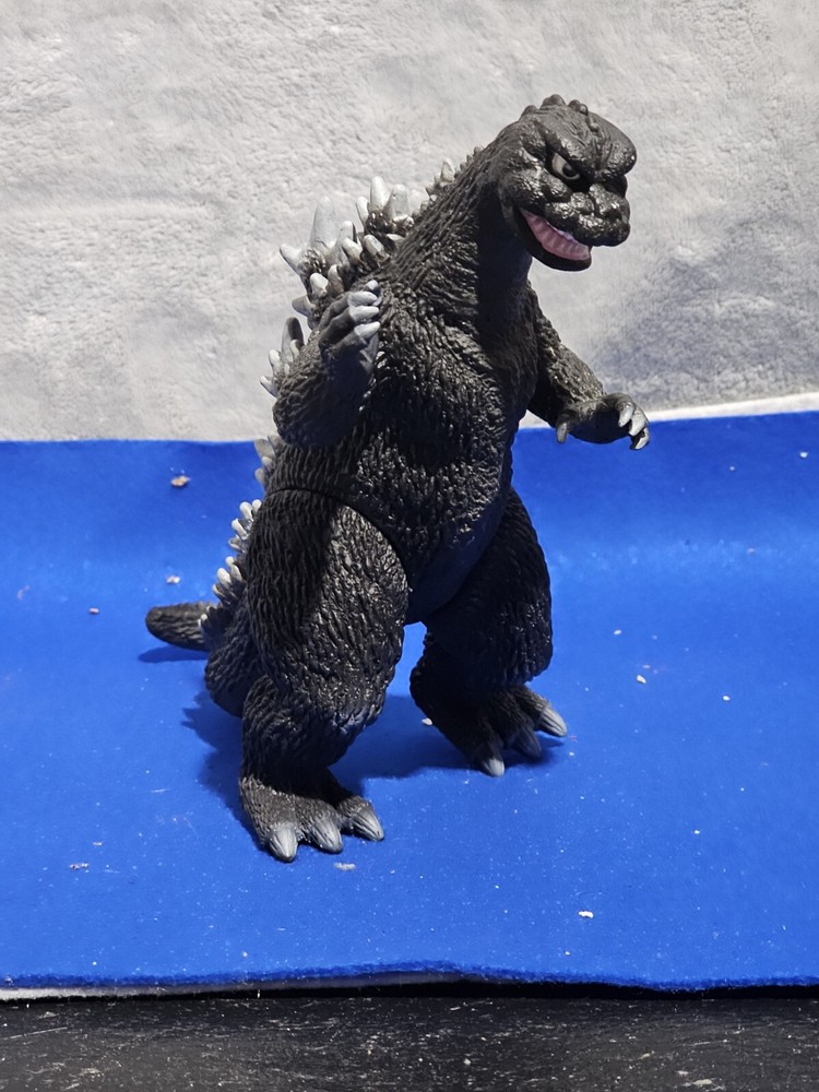 The 2007 Toho Co. Bandai 7" Classic Godzilla Kaiju Monster Action Figure is a vinyl figure of Godzilla standing at 12 inches tall. Made in China, this non-modified 1:8 scale figure is based on the iconic monster from the 1986 movie. It comes without packaging, and is part of the Godzilla character family, suitable for ages 8-11. This authentic Bandai product is a must-have for fans of Godzilla and collectors of monster action figures.