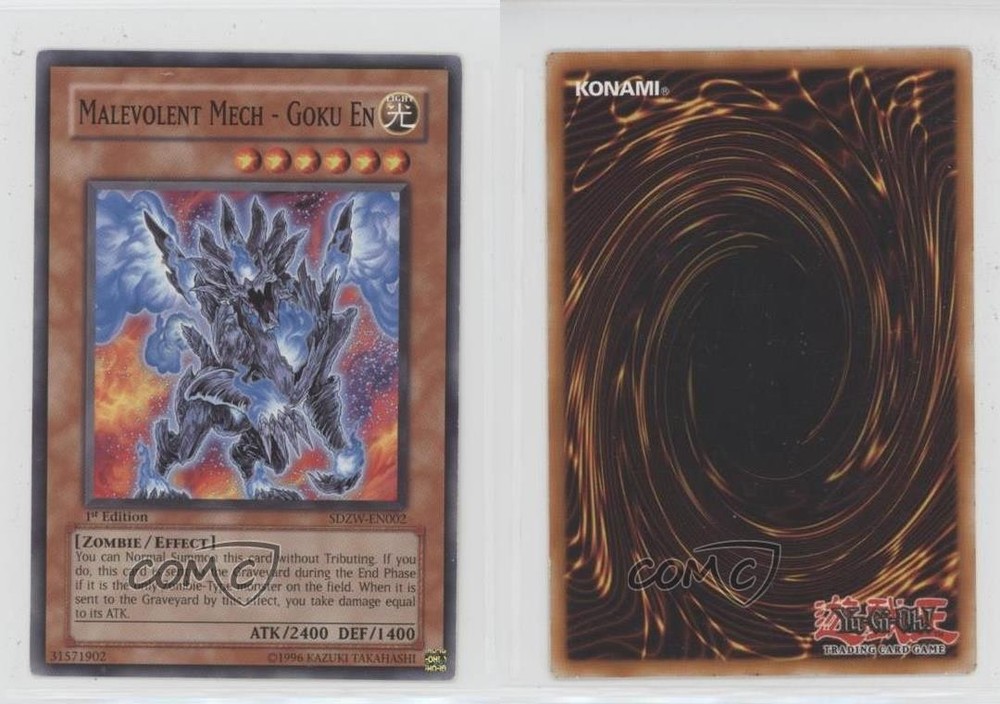 2008 Yu-Gi-Oh! Zombie World - Structure Deck [Base] - 1st Edition #SDZW-EN002 Malevolent Mech - Goku En COMC Item: 102602085 - YuGiOh Card Search for more: 2008 Yu-Gi-Oh! Zombie World Search for more: 2008 Yu-Gi-Oh! Zombie World - Structure Deck [Base] - 1st Edition View all of our Listings Auctions Buy It Now About Us Located in the beautiful Pacific Northwest, COMC (Check Out My Cards) is the world's largest consignment service for trading card singles. More than 10,000 people have used our consignment service to list over 50 million trading cards. Find out how we can help you consign your items on eBay by contacting us through eBay messaging. COMC -- "The Safe & Easy Way to Buy & Sell" Raw Condition for Modern Cards Unless otherwise noted, raw modern cards are listed in Near Mint-Mint condition or better. A NM-MT card appears to be Mint at first glance, but upon closer inspection, may exhibit some of the following: minor print defects (e.g. roller marks, print line, dimple), minor scratches, slight edge wear, and slight corner wear. Centering is clearly visible in the images provided and does not factor into our condition assessment. Raw Condition for Vintage Cards Unless otherwise noted, raw vintage cards are listed in Excellent condition or better. An EX card may exhibit some of the following: minor rounding of corners, surface wear, print defects, light scratches, and slight edge wear/chipping. Centering is clearly visible in the images provided and does not factor into our condition assessment. Domestic Shipping Combined shipping for multiple items is available. To receive combined shipping, please ensure all desired items are in your eBay shopping cart before proceeding to checkout. eBay limits orders to 40 items per order. We automatically combine multiple orders placed on the same day. If you place multiple orders on the same day, please contact us to request a refund of applicable shipping costs. Signature confirmation may be required on invoices over $400. All cards are protected and shipped securely. International Shipping COMC offers eBay's International Shipping (EIS) for international orders under $2,500* (see country exceptions below). All duties and import fees are paid at checkout; in the rare event that there are additional import fees upon delivery, these are borne by the buyer. EIS packages route through a shipping hub in Erlanger, KY before shipping to their final destination. Please note that EIS does not allow for combined shipments. The shipping rates are determined by eBay and cannot be adjusted. *Maximum sale price exceptions: Colombia, Kuwait ($2,000); Taiwan ($1,539); Chile, Costa Rica, Guatemala, Honduras, Trinidad and Tobago ($1,000); Antigua and Barbuda, Aruba, Belize, Dominica, Grenada, Philippines, Saint Kitts and Nevis, Saint Lucia, Montserrat, Turks and Caicos Islands ($500); Dominican Republic, El Salvador ($200). Please request a shipping quote through eBay messaging for orders that exceed the maximum sale price supported by eBay's International Shipping. You will be responsible for all duties and import fees for international orders shipped outside the EIS. All cards are protected and shipped securely. Payment COMC does not accept offers on our cards through our eBay storefront. COMC utilizes eBay’s managed payments system. If you are experiencing difficulties making a payment, please contact eBay for assistance. Return Policy Returns are only accepted on the rare occasion the item is not as described. If you are making a return, please initiate the return process through eBay so a mailing label can be provided for you. Prior to listing, our expert team carefully assessed this item to represent it accurately. Please review the description and high-definition images prior to purchasing to ensure this item meets your satisfaction. We welcome you to contact us if you have further questions about this item. Trust and Integrity COMC carefully assesses each item consigned to us to prevent fraudulent items from entering the marketplace. If you believe an item offered on COMC may be fraudulent, please contact us with details so we can investigate the issue. Items we determine are outside our supported items policy may be removed. Last Modified: 5/22/2025 6:12:33 PM PDT
