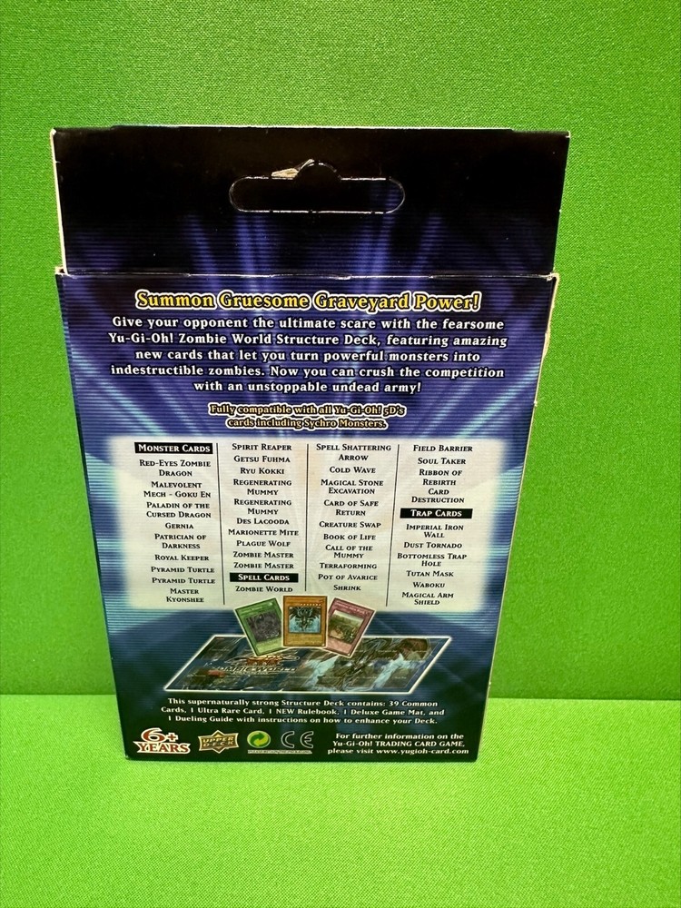 This 2008 Yu-Gi-Oh! TCG deck is a must-have for collectors and players alike. Featuring the Zombie World archetype, this structure deck comes in a standard size and is in English language. The deck is configured for optimal play and includes cards from the 1st edition of the set. The manufacturer, Konami, has ensured that this deck is of the highest quality and is a great addition to any collection. With its unique features and character, this deck is perfect for anyone looking to add some excitement to their game or collection.