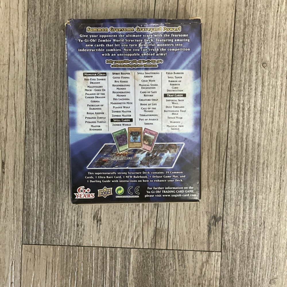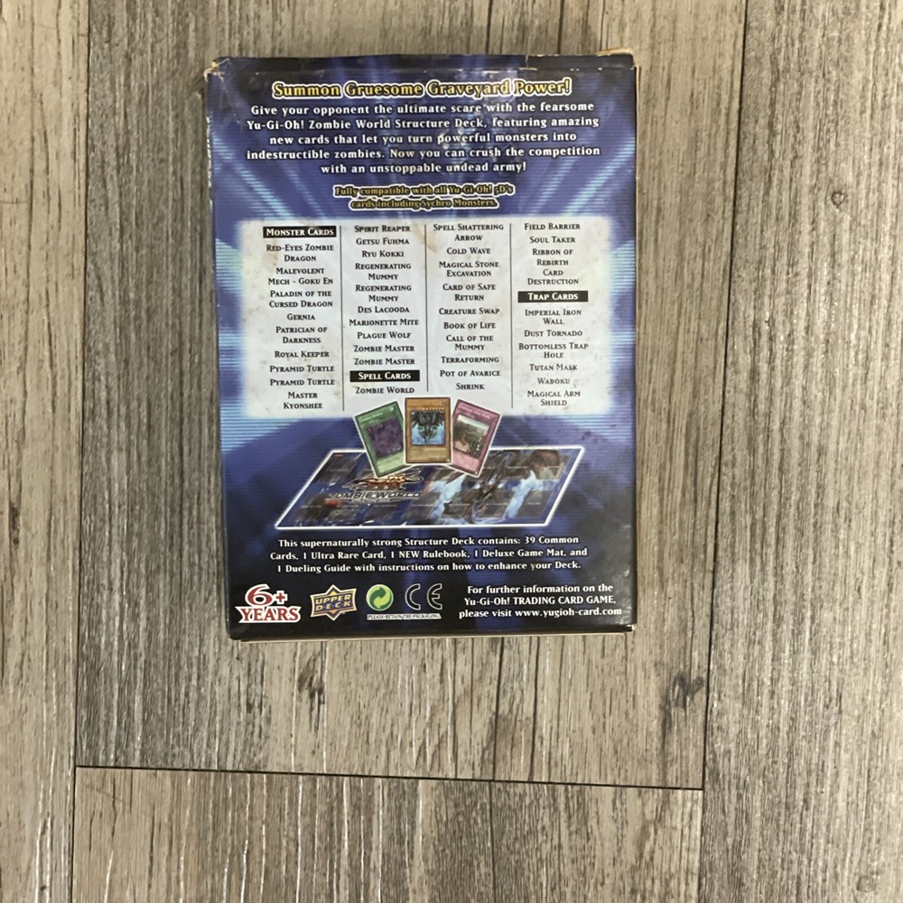 This 2008 Yu-Gi-Oh! TCG Structure Deck is a must-have for collectors and players alike. Featuring the Zombie World archetype, this 1st Edition deck comes in a standard size and includes 40 cards. The deck is in English and manufactured by Konami, making it a great addition to any collection. The deck is configured for optimal play and includes all the necessary cards to create a unique and powerful zombie creature. This collectible card game sealed deck is ideal for players aged 6 and above, and is not considered vintage. Get ready to enter the world of Yu-Gi-Oh! with this exciting and deadly Zombie World Structure Deck.