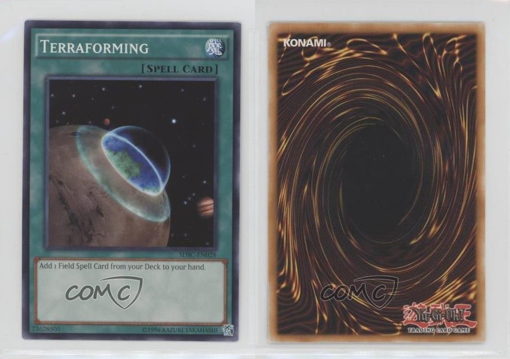 2009 Yu-Gi-Oh! Spellcasters' Command - Structure Deck [Base] #SDSC-EN028 Terraforming COMC Item: 161666980 - YuGiOh Card - Featuring Terraforming Search for more: 2009 Yu-Gi-Oh! Spellcasters' Command Search for more: 2009 Yu-Gi-Oh! Spellcasters' Command - Structure Deck [Base] View all of our Listings Auctions Buy It Now About Us Located in the beautiful Pacific Northwest, COMC (Check Out My Cards) is the world's largest consignment service for trading card singles. More than 10,000 people have used our consignment service to list over 50 million trading cards. Find out how we can help you consign your items on eBay by contacting us through eBay messaging. COMC -- "The Safe & Easy Way to Buy & Sell" Raw Condition for Modern Cards Unless otherwise noted, raw modern cards are listed in Near Mint-Mint condition or better. A NM-MT card appears to be Mint at first glance, but upon closer inspection, may exhibit some of the following: minor print defects (e.g. roller marks, print line, dimple), minor scratches, slight edge wear, and slight corner wear. Centering is clearly visible in the images provided and does not factor into our condition assessment. Raw Condition for Vintage Cards Unless otherwise noted, raw vintage cards are listed in Excellent condition or better. An EX card may exhibit some of the following: minor rounding of corners, surface wear, print defects, light scratches, and slight edge wear/chipping. Centering is clearly visible in the images provided and does not factor into our condition assessment. Domestic Shipping Combined shipping for multiple items is available. To receive combined shipping, please ensure all desired items are in your eBay shopping cart before proceeding to checkout. eBay limits orders to 40 items per order. We automatically combine multiple orders placed on the same day. If you place multiple orders on the same day, please contact us to request a refund of applicable shipping costs. Signature confirmation may be required on invoices over $400. All cards are protected and shipped securely. International Shipping COMC offers eBay's International Shipping (EIS) for international orders under $2,500* (see country exceptions below). All duties and import fees are paid at checkout; in the rare event that there are additional import fees upon delivery, these are borne by the buyer. EIS packages route through a shipping hub in Erlanger, KY before shipping to their final destination. Please note that EIS does not allow for combined shipments. The shipping rates are determined by eBay and cannot be adjusted. *Maximum sale price exceptions: Colombia, Kuwait ($2,000); Taiwan ($1,539); Chile, Costa Rica, Guatemala, Honduras, Trinidad and Tobago ($1,000); Antigua and Barbuda, Aruba, Belize, Dominica, Grenada, Philippines, Saint Kitts and Nevis, Saint Lucia, Montserrat, Turks and Caicos Islands ($500); Dominican Republic, El Salvador ($200). Please request a shipping quote through eBay messaging for orders that exceed the maximum sale price supported by eBay's International Shipping. You will be responsible for all duties and import fees for international orders shipped outside the EIS. All cards are protected and shipped securely. Payment COMC does not accept offers on our cards through our eBay storefront. COMC utilizes eBay’s managed payments system. If you are experiencing difficulties making a payment, please contact eBay for assistance. Return Policy Returns are only accepted on the rare occasion the item is not as described. If you are making a return, please initiate the return process through eBay so a mailing label can be provided for you. Prior to listing, our expert team carefully assessed this item to represent it accurately. Please review the description and high-definition images prior to purchasing to ensure this item meets your satisfaction. We welcome you to contact us if you have further questions about this item. Trust and Integrity COMC carefully assesses each item consigned to us to prevent fraudulent items from entering the marketplace. If you believe an item offered on COMC may be fraudulent, please contact us with details so we can investigate the issue. Items we determine are outside our supported items policy may be removed. Last Modified: 6/19/2025 10:40:11 AM PDT