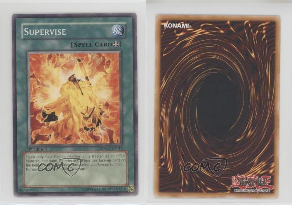 2009 Yu-Gi-Oh! Warriors' Strike - Structure Deck [Base] - 1st Edition #SDWS-EN017 Supervise COMC Item: 128352469 - YuGiOh Card - Featuring Supervise Search for more: 2009 Yu-Gi-Oh! Warriors' Strike Search for more: 2009 Yu-Gi-Oh! Warriors' Strike - Structure Deck [Base] - 1st Edition View all of our Listings Auctions Buy It Now About Us Located in the beautiful Pacific Northwest, COMC (Check Out My Cards) is the world's largest consignment service for trading card singles. More than 10,000 people have used our consignment service to list over 50 million trading cards. Find out how we can help you consign your items on eBay by contacting us through eBay messaging. COMC -- "The Safe & Easy Way to Buy & Sell" Raw Condition for Modern Cards Unless otherwise noted, raw modern cards are listed in Near Mint-Mint condition or better. A NM-MT card appears to be Mint at first glance, but upon closer inspection, may exhibit some of the following: minor print defects (e.g. roller marks, print line, dimple), minor scratches, slight edge wear, and slight corner wear. Centering is clearly visible in the images provided and does not factor into our condition assessment. Raw Condition for Vintage Cards Unless otherwise noted, raw vintage cards are listed in Excellent condition or better. An EX card may exhibit some of the following: minor rounding of corners, surface wear, print defects, light scratches, and slight edge wear/chipping. Centering is clearly visible in the images provided and does not factor into our condition assessment. Domestic Shipping Combined shipping for multiple items is available. To receive combined shipping, please ensure all desired items are in your eBay shopping cart before proceeding to checkout. eBay limits orders to 40 items per order. We automatically combine multiple orders placed on the same day. If you place multiple orders on the same day, please contact us to request a refund of applicable shipping costs. Signature confirmation may be required on invoices over $400. All cards are protected and shipped securely. International Shipping COMC offers eBay's International Shipping (EIS) for international orders under $2,500* (see country exceptions below). All duties and import fees are paid at checkout; in the rare event that there are additional import fees upon delivery, these are borne by the buyer. EIS packages route through a shipping hub in Erlanger, KY before shipping to their final destination. Please note that EIS does not allow for combined shipments. The shipping rates are determined by eBay and cannot be adjusted. *Maximum sale price exceptions: Colombia, Kuwait ($2,000); Taiwan ($1,539); Chile, Costa Rica, Guatemala, Honduras, Trinidad and Tobago ($1,000); Antigua and Barbuda, Aruba, Belize, Dominica, Grenada, Philippines, Saint Kitts and Nevis, Saint Lucia, Montserrat, Turks and Caicos Islands ($500); Dominican Republic, El Salvador ($200). Please request a shipping quote through eBay messaging for orders that exceed the maximum sale price supported by eBay's International Shipping. You will be responsible for all duties and import fees for international orders shipped outside the EIS. All cards are protected and shipped securely. Payment COMC does not accept offers on our cards through our eBay storefront. COMC utilizes eBay’s managed payments system. If you are experiencing difficulties making a payment, please contact eBay for assistance. Return Policy Returns are only accepted on the rare occasion the item is not as described. If you are making a return, please initiate the return process through eBay so a mailing label can be provided for you. Prior to listing, our expert team carefully assessed this item to represent it accurately. Please review the description and high-definition images prior to purchasing to ensure this item meets your satisfaction. We welcome you to contact us if you have further questions about this item. Trust and Integrity COMC carefully assesses each item consigned to us to prevent fraudulent items from entering the marketplace. If you believe an item offered on COMC may be fraudulent, please contact us with details so we can investigate the issue. Items we determine are outside our supported items policy may be removed. Last Modified: 6/12/2025 4:59:44 AM PDT