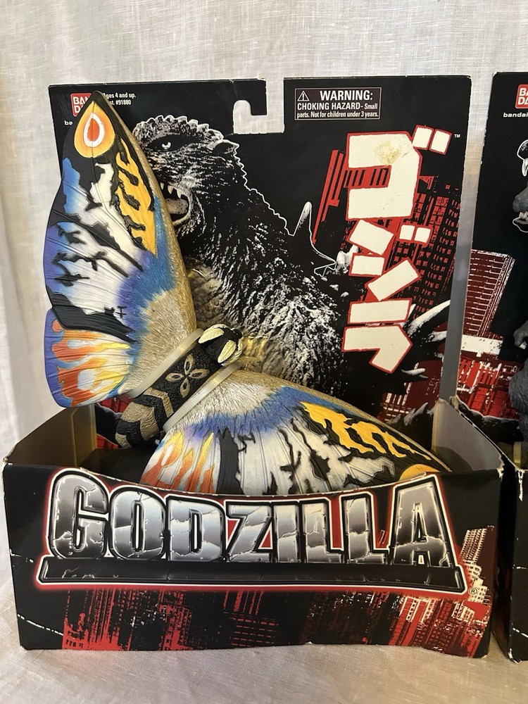 New in packaging, packaging has minor wear. See pictures for details. This is a fantastic 2010 Bandai Toho Rainbow Mothra & First Godzilla action figure lot, still in its original packaging. The figures are beautifully crafted and highly detailed, making them a must-have for any monster toy collector. The set includes both Rainbow Mothra and the First Godzilla figures, which are sure to delight fans of the classic Toho monster films. The figures were made in China by Bandai, a renowned toy manufacturer, and are part of the Robots, Monsters & Space Toys category in the Toys & Hobbies section of eBay. They are also listed under the Monsters subcategory, specifically under the Godzilla theme. These action figures are an excellent addition to any collection and are sure to bring joy and excitement to any fan of the Toho monster films.