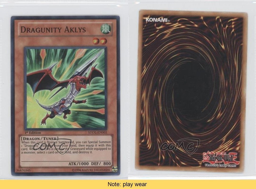 2011 Yu-Gi-Oh! Dragunity Legion - Structure Deck [Base] - 1st Edition #SDDL-EN003 Dragunity Aklys COMC Item: 12619196 CONDITION NOTE: play wear - YuGiOh Card - Featuring Dragunity Aklys Search for more: 2011 Yu-Gi-Oh! Dragunity Legion Search for more: 2011 Yu-Gi-Oh! Dragunity Legion - Structure Deck [Base] - 1st Edition View all of our Listings Auctions Buy It Now About Us Located in the beautiful Pacific Northwest, COMC (Check Out My Cards) is the world's largest consignment service for trading card singles. More than 10,000 people have used our consignment service to list over 50 million trading cards. Find out how we can help you consign your items on eBay by contacting us through eBay messaging. COMC -- "The Safe & Easy Way to Buy & Sell" Raw Condition for Modern Cards Unless otherwise noted, raw modern cards are listed in Near Mint-Mint condition or better. A NM-MT card appears to be Mint at first glance, but upon closer inspection, may exhibit some of the following: minor print defects (e.g. roller marks, print line, dimple), minor scratches, slight edge wear, and slight corner wear. Centering is clearly visible in the images provided and does not factor into our condition assessment. Raw Condition for Vintage Cards Unless otherwise noted, raw vintage cards are listed in Excellent condition or better. An EX card may exhibit some of the following: minor rounding of corners, surface wear, print defects, light scratches, and slight edge wear/chipping. Centering is clearly visible in the images provided and does not factor into our condition assessment. Domestic Shipping Combined shipping for multiple items is available. To receive combined shipping, please ensure all desired items are in your eBay shopping cart before proceeding to checkout. eBay limits orders to 40 items per order. We automatically combine multiple orders placed on the same day. If you place multiple orders on the same day, please contact us to request a refund of applicable shipping costs. Signature confirmation may be required on invoices over $400. All cards are protected and shipped securely. International Shipping COMC offers eBay's International Shipping (EIS) for international orders under $2,500* (see country exceptions below). All duties and import fees are paid at checkout; in the rare event that there are additional import fees upon delivery, these are borne by the buyer. EIS packages route through a shipping hub in Erlanger, KY before shipping to their final destination. Please note that EIS does not allow for combined shipments. The shipping rates are determined by eBay and cannot be adjusted. *Maximum sale price exceptions: Colombia, Kuwait ($2,000); Taiwan ($1,539); Chile, Costa Rica, Guatemala, Honduras, Trinidad and Tobago ($1,000); Antigua and Barbuda, Aruba, Belize, Dominica, Grenada, Philippines, Saint Kitts and Nevis, Saint Lucia, Montserrat, Turks and Caicos Islands ($500); Dominican Republic, El Salvador ($200). Please request a shipping quote through eBay messaging for orders that exceed the maximum sale price supported by eBay's International Shipping. You will be responsible for all duties and import fees for international orders shipped outside the EIS. All cards are protected and shipped securely. Payment COMC does not accept offers on our cards through our eBay storefront. COMC utilizes eBay’s managed payments system. If you are experiencing difficulties making a payment, please contact eBay for assistance. Return Policy Returns are only accepted on the rare occasion the item is not as described. If you are making a return, please initiate the return process through eBay so a mailing label can be provided for you. Prior to listing, our expert team carefully assessed this item to represent it accurately. Please review the description and high-definition images prior to purchasing to ensure this item meets your satisfaction. We welcome you to contact us if you have further questions about this item. Trust and Integrity COMC carefully assesses each item consigned to us to prevent fraudulent items from entering the marketplace. If you believe an item offered on COMC may be fraudulent, please contact us with details so we can investigate the issue. Items we determine are outside our supported items policy may be removed. Last Modified: 7/2/2025 10:40:02 AM PDT