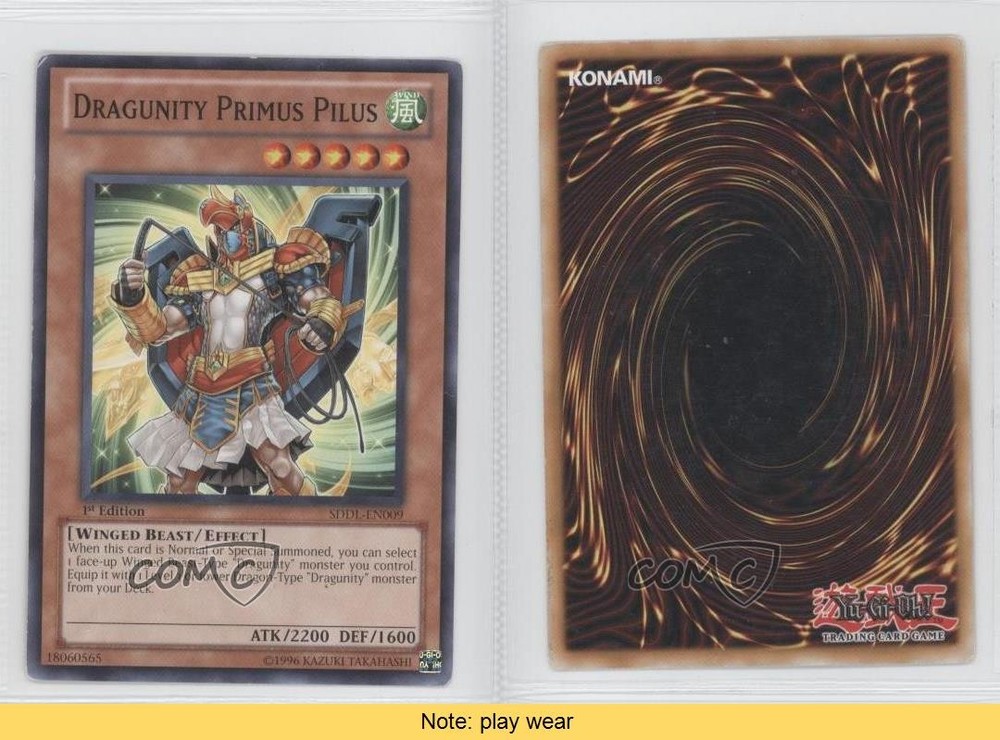 2011 Yu-Gi-Oh! Dragunity Legion - Structure Deck [Base] - 1st Edition #SDDL-EN009 Dragunity Primus Pilus COMC Item: 10531436 CONDITION NOTE: play wear - YuGiOh Card - Featuring Dragunity Primus Pilus Search for more: 2011 Yu-Gi-Oh! Dragunity Legion Search for more: 2011 Yu-Gi-Oh! Dragunity Legion - Structure Deck [Base] - 1st Edition View all of our Listings Auctions Buy It Now About Us Located in the beautiful Pacific Northwest, COMC (Check Out My Cards) is the world's largest consignment service for trading card singles. More than 10,000 people have used our consignment service to list over 50 million trading cards. Find out how we can help you consign your items on eBay by contacting us through eBay messaging. COMC -- "The Safe & Easy Way to Buy & Sell" Raw Condition for Modern Cards Unless otherwise noted, raw modern cards are listed in Near Mint-Mint condition or better. A NM-MT card appears to be Mint at first glance, but upon closer inspection, may exhibit some of the following: minor print defects (e.g. roller marks, print line, dimple), minor scratches, slight edge wear, and slight corner wear. Centering is clearly visible in the images provided and does not factor into our condition assessment. Raw Condition for Vintage Cards Unless otherwise noted, raw vintage cards are listed in Excellent condition or better. An EX card may exhibit some of the following: minor rounding of corners, surface wear, print defects, light scratches, and slight edge wear/chipping. Centering is clearly visible in the images provided and does not factor into our condition assessment. Domestic Shipping Combined shipping for multiple items is available. To receive combined shipping, please ensure all desired items are in your eBay shopping cart before proceeding to checkout. eBay limits orders to 40 items per order. We automatically combine multiple orders placed on the same day. If you place multiple orders on the same day, please contact us to request a refund of applicable shipping costs. Signature confirmation may be required on invoices over $400. All cards are protected and shipped securely. International Shipping COMC offers eBay's International Shipping (EIS) for international orders under $2,500* (see country exceptions below). All duties and import fees are paid at checkout; in the rare event that there are additional import fees upon delivery, these are borne by the buyer. EIS packages route through a shipping hub in Erlanger, KY before shipping to their final destination. Please note that EIS does not allow for combined shipments. The shipping rates are determined by eBay and cannot be adjusted. *Maximum sale price exceptions: Colombia, Kuwait ($2,000); Taiwan ($1,539); Chile, Costa Rica, Guatemala, Honduras, Trinidad and Tobago ($1,000); Antigua and Barbuda, Aruba, Belize, Dominica, Grenada, Philippines, Saint Kitts and Nevis, Saint Lucia, Montserrat, Turks and Caicos Islands ($500); Dominican Republic, El Salvador ($200). Please request a shipping quote through eBay messaging for orders that exceed the maximum sale price supported by eBay's International Shipping. You will be responsible for all duties and import fees for international orders shipped outside the EIS. All cards are protected and shipped securely. Payment COMC does not accept offers on our cards through our eBay storefront. COMC utilizes eBay’s managed payments system. If you are experiencing difficulties making a payment, please contact eBay for assistance. Return Policy Returns are only accepted on the rare occasion the item is not as described. If you are making a return, please initiate the return process through eBay so a mailing label can be provided for you. Prior to listing, our expert team carefully assessed this item to represent it accurately. Please review the description and high-definition images prior to purchasing to ensure this item meets your satisfaction. We welcome you to contact us if you have further questions about this item. Trust and Integrity COMC carefully assesses each item consigned to us to prevent fraudulent items from entering the marketplace. If you believe an item offered on COMC may be fraudulent, please contact us with details so we can investigate the issue. Items we determine are outside our supported items policy may be removed. Last Modified: 6/15/2025 7:20:44 PM PDT
