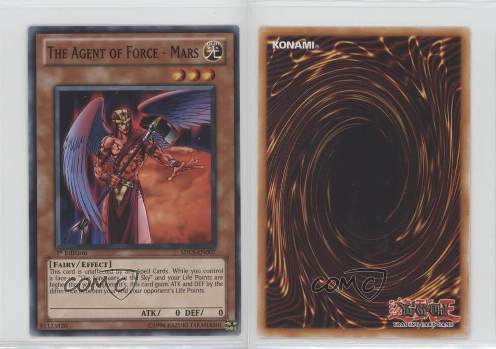 2011 Yu-Gi-Oh! Lost Sanctuary - Structure Deck [Base] - 1st Edition #SDLS-EN007 The Agent of Force - Mars COMC Item: 51730736 - YuGiOh Card Search for more: 2011 Yu-Gi-Oh! Lost Sanctuary Search for more: 2011 Yu-Gi-Oh! Lost Sanctuary - Structure Deck [Base] - 1st Edition View all of our Listings Auctions Buy It Now About Us Located in the beautiful Pacific Northwest, COMC (Check Out My Cards) is the world's largest consignment service for trading card singles. More than 10,000 people have used our consignment service to list over 50 million trading cards. Find out how we can help you consign your items on eBay by contacting us through eBay messaging. COMC -- "The Safe & Easy Way to Buy & Sell" Raw Condition for Modern Cards Unless otherwise noted, raw modern cards are listed in Near Mint-Mint condition or better. A NM-MT card appears to be Mint at first glance, but upon closer inspection, may exhibit some of the following: minor print defects (e.g. roller marks, print line, dimple), minor scratches, slight edge wear, and slight corner wear. Centering is clearly visible in the images provided and does not factor into our condition assessment. Raw Condition for Vintage Cards Unless otherwise noted, raw vintage cards are listed in Excellent condition or better. An EX card may exhibit some of the following: minor rounding of corners, surface wear, print defects, light scratches, and slight edge wear/chipping. Centering is clearly visible in the images provided and does not factor into our condition assessment. Domestic Shipping Combined shipping for multiple items is available. To receive combined shipping, please ensure all desired items are in your eBay shopping cart before proceeding to checkout. eBay limits orders to 40 items per order. We automatically combine multiple orders placed on the same day. If you place multiple orders on the same day, please contact us to request a refund of applicable shipping costs. Signature confirmation may be required on invoices over $400. All cards are protected and shipped securely. International Shipping COMC offers eBay's International Shipping (EIS) for international orders under $2,500* (see country exceptions below). All duties and import fees are paid at checkout; in the rare event that there are additional import fees upon delivery, these are borne by the buyer. EIS packages route through a shipping hub in Erlanger, KY before shipping to their final destination. Please note that EIS does not allow for combined shipments. The shipping rates are determined by eBay and cannot be adjusted. *Maximum sale price exceptions: Colombia, Kuwait ($2,000); Taiwan ($1,539); Chile, Costa Rica, Guatemala, Honduras, Trinidad and Tobago ($1,000); Antigua and Barbuda, Aruba, Belize, Dominica, Grenada, Philippines, Saint Kitts and Nevis, Saint Lucia, Montserrat, Turks and Caicos Islands ($500); Dominican Republic, El Salvador ($200). Please request a shipping quote through eBay messaging for orders that exceed the maximum sale price supported by eBay's International Shipping. You will be responsible for all duties and import fees for international orders shipped outside the EIS. All cards are protected and shipped securely. Payment COMC does not accept offers on our cards through our eBay storefront. COMC utilizes eBay’s managed payments system. If you are experiencing difficulties making a payment, please contact eBay for assistance. Return Policy Returns are only accepted on the rare occasion the item is not as described. If you are making a return, please initiate the return process through eBay so a mailing label can be provided for you. Prior to listing, our expert team carefully assessed this item to represent it accurately. Please review the description and high-definition images prior to purchasing to ensure this item meets your satisfaction. We welcome you to contact us if you have further questions about this item. Trust and Integrity COMC carefully assesses each item consigned to us to prevent fraudulent items from entering the marketplace. If you believe an item offered on COMC may be fraudulent, please contact us with details so we can investigate the issue. Items we determine are outside our supported items policy may be removed. Last Modified: 6/8/2025 5:42:44 AM PDT