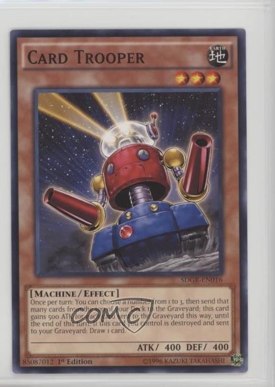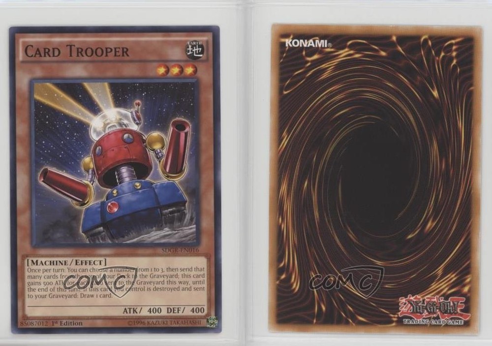2014 Yu-Gi-Oh! Geargia Rampage - Structure Deck [Base] - 1st Edition #SDGR-EN016 Card Trooper COMC Item: 48937951 - YuGiOh Card - Featuring Card Trooper Search for more: 2014 Yu-Gi-Oh! Geargia Rampage Search for more: 2014 Yu-Gi-Oh! Geargia Rampage - Structure Deck [Base] - 1st Edition View all of our Listings Auctions Buy It Now About Us Located in the beautiful Pacific Northwest, COMC (Check Out My Cards) is the world's largest consignment service for trading card singles. More than 10,000 people have used our consignment service to list over 50 million trading cards. Find out how we can help you consign your items on eBay by contacting us through eBay messaging. COMC -- "The Safe & Easy Way to Buy & Sell" Raw Condition for Modern Cards Unless otherwise noted, raw modern cards are listed in Near Mint-Mint condition or better. A NM-MT card appears to be Mint at first glance, but upon closer inspection, may exhibit some of the following: minor print defects (e.g. roller marks, print line, dimple), minor scratches, slight edge wear, and slight corner wear. Centering is clearly visible in the images provided and does not factor into our condition assessment. Raw Condition for Vintage Cards Unless otherwise noted, raw vintage cards are listed in Excellent condition or better. An EX card may exhibit some of the following: minor rounding of corners, surface wear, print defects, light scratches, and slight edge wear/chipping. Centering is clearly visible in the images provided and does not factor into our condition assessment. Domestic Shipping Combined shipping for multiple items is available. To receive combined shipping, please ensure all desired items are in your eBay shopping cart before proceeding to checkout. eBay limits orders to 40 items per order. We automatically combine multiple orders placed on the same day. If you place multiple orders on the same day, please contact us to request a refund of applicable shipping costs. Signature confirmation may be required on invoices over $400. All cards are protected and shipped securely. International Shipping COMC offers eBay's International Shipping (EIS) for international orders under $2,500* (see country exceptions below). All duties and import fees are paid at checkout; in the rare event that there are additional import fees upon delivery, these are borne by the buyer. EIS packages route through a shipping hub in Erlanger, KY before shipping to their final destination. Please note that EIS does not allow for combined shipments. The shipping rates are determined by eBay and cannot be adjusted. *Maximum sale price exceptions: Colombia, Kuwait ($2,000); Taiwan ($1,539); Chile, Costa Rica, Guatemala, Honduras, Trinidad and Tobago ($1,000); Antigua and Barbuda, Aruba, Belize, Dominica, Grenada, Philippines, Saint Kitts and Nevis, Saint Lucia, Montserrat, Turks and Caicos Islands ($500); Dominican Republic, El Salvador ($200). Please request a shipping quote through eBay messaging for orders that exceed the maximum sale price supported by eBay's International Shipping. You will be responsible for all duties and import fees for international orders shipped outside the EIS. All cards are protected and shipped securely. Payment COMC does not accept offers on our cards through our eBay storefront. COMC utilizes eBay’s managed payments system. If you are experiencing difficulties making a payment, please contact eBay for assistance. Return Policy Returns are only accepted on the rare occasion the item is not as described. If you are making a return, please initiate the return process through eBay so a mailing label can be provided for you. Prior to listing, our expert team carefully assessed this item to represent it accurately. Please review the description and high-definition images prior to purchasing to ensure this item meets your satisfaction. We welcome you to contact us if you have further questions about this item. Trust and Integrity COMC carefully assesses each item consigned to us to prevent fraudulent items from entering the marketplace. If you believe an item offered on COMC may be fraudulent, please contact us with details so we can investigate the issue. Items we determine are outside our supported items policy may be removed. Last Modified: 5/22/2025 10:07:44 PM PDT