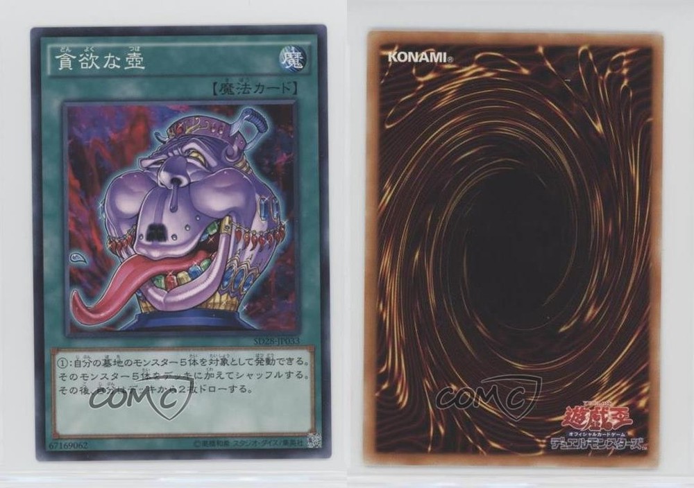 2014 Yu-Gi-Oh! Structure Deck - Synchron Extreme - [Base] - Japanese Unlimited #SD28-JP033 Pot of Avarice COMC Item: 111935588 - YuGiOh Card - Featuring Pot of Avarice Search for more: 2014 Yu-Gi-Oh! Structure Deck - Synchron Extreme Search for more: 2014 Yu-Gi-Oh! Structure Deck - Synchron Extreme - [Base] - Japanese Unlimited View all of our Listings Auctions Buy It Now About Us Located in the beautiful Pacific Northwest, COMC (Check Out My Cards) is the world's largest consignment service for trading card singles. More than 10,000 people have used our consignment service to list over 50 million trading cards. Find out how we can help you consign your items on eBay by contacting us through eBay messaging. COMC -- "The Safe & Easy Way to Buy & Sell" Raw Condition for Modern Cards Unless otherwise noted, raw modern cards are listed in Near Mint-Mint condition or better. A NM-MT card appears to be Mint at first glance, but upon closer inspection, may exhibit some of the following: minor print defects (e.g. roller marks, print line, dimple), minor scratches, slight edge wear, and slight corner wear. Centering is clearly visible in the images provided and does not factor into our condition assessment. Raw Condition for Vintage Cards Unless otherwise noted, raw vintage cards are listed in Excellent condition or better. An EX card may exhibit some of the following: minor rounding of corners, surface wear, print defects, light scratches, and slight edge wear/chipping. Centering is clearly visible in the images provided and does not factor into our condition assessment. Domestic Shipping Combined shipping for multiple items is available. To receive combined shipping, please ensure all desired items are in your eBay shopping cart before proceeding to checkout. eBay limits orders to 40 items per order. We automatically combine multiple orders placed on the same day. If you place multiple orders on the same day, please contact us to request a refund of applicable shipping costs. Signature confirmation may be required on invoices over $400. All cards are protected and shipped securely. International Shipping COMC offers eBay's International Shipping (EIS) for international orders under $2,500* (see country exceptions below). All duties and import fees are paid at checkout; in the rare event that there are additional import fees upon delivery, these are borne by the buyer. EIS packages route through a shipping hub in Erlanger, KY before shipping to their final destination. Please note that EIS does not allow for combined shipments. The shipping rates are determined by eBay and cannot be adjusted. *Maximum sale price exceptions: Colombia, Kuwait ($2,000); Taiwan ($1,539); Chile, Costa Rica, Guatemala, Honduras, Trinidad and Tobago ($1,000); Antigua and Barbuda, Aruba, Belize, Dominica, Grenada, Philippines, Saint Kitts and Nevis, Saint Lucia, Montserrat, Turks and Caicos Islands ($500); Dominican Republic, El Salvador ($200). Please request a shipping quote through eBay messaging for orders that exceed the maximum sale price supported by eBay's International Shipping. You will be responsible for all duties and import fees for international orders shipped outside the EIS. All cards are protected and shipped securely. Payment COMC does not accept offers on our cards through our eBay storefront. COMC utilizes eBay’s managed payments system. If you are experiencing difficulties making a payment, please contact eBay for assistance. Return Policy Returns are only accepted on the rare occasion the item is not as described. If you are making a return, please initiate the return process through eBay so a mailing label can be provided for you. Prior to listing, our expert team carefully assessed this item to represent it accurately. Please review the description and high-definition images prior to purchasing to ensure this item meets your satisfaction. We welcome you to contact us if you have further questions about this item. Trust and Integrity COMC carefully assesses each item consigned to us to prevent fraudulent items from entering the marketplace. If you believe an item offered on COMC may be fraudulent, please contact us with details so we can investigate the issue. Items we determine are outside our supported items policy may be removed. Last Modified: 5/16/2025 3:13:46 PM PDT