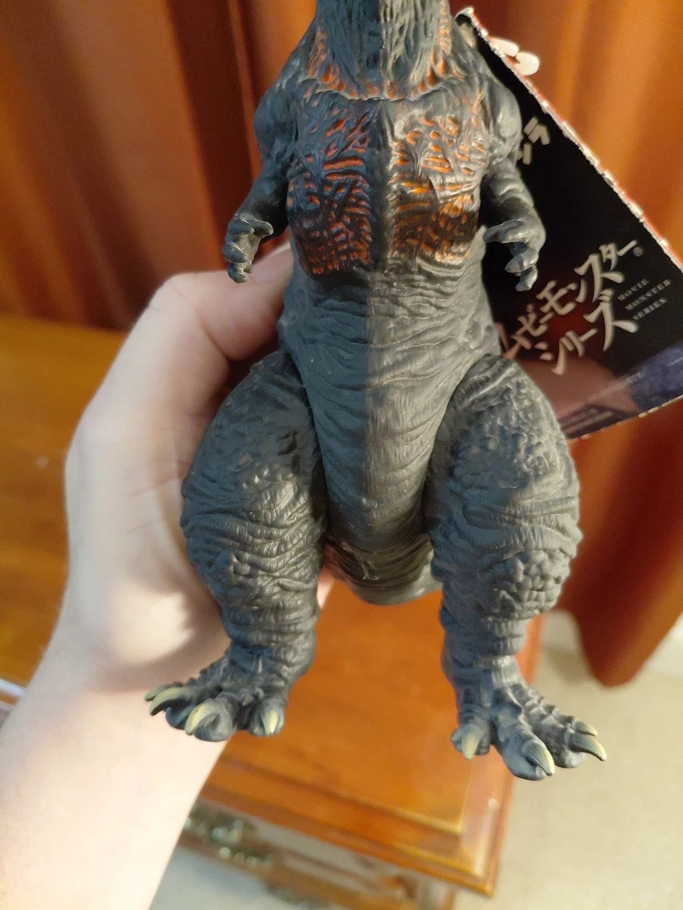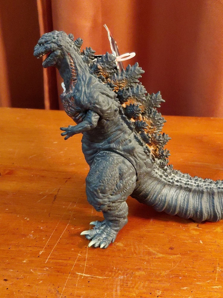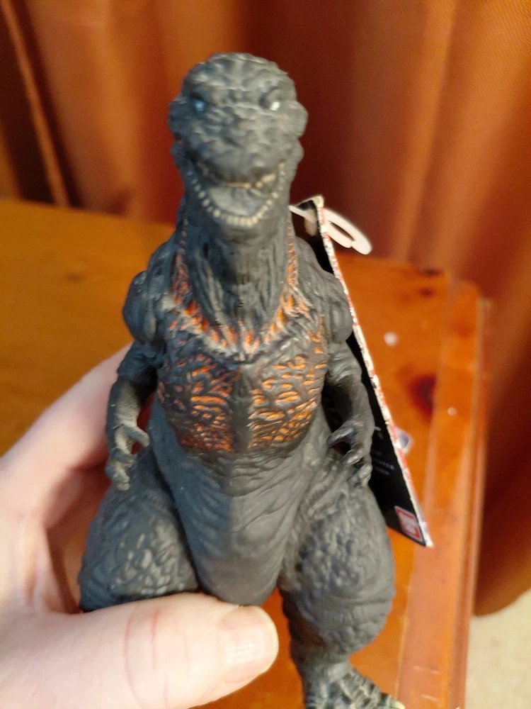 7 INCHES TALL FROM HEAD TO TAIL = 12 INCHES ORIGINAL TAG FROM 2016 SHIPPED WITH CARE This 7" Shin Godzilla figure from Bandai's Movie Monster Series is a must-have for any fans of the iconic monster. Imported from Japan, this highly detailed figure captures the essence of the character from the 2016 movie. The recommended age range for this toy is 3 and up, making it a great addition to any collection. The figure features Bandai's attention to detail and quality craftsmanship. It's a perfect representation of Shin Godzilla, and it's sure to please any fans of the monster. Whether you're a collector or just looking for a cool toy to play with, this Bandai Shin Godzilla figure is a great choice.