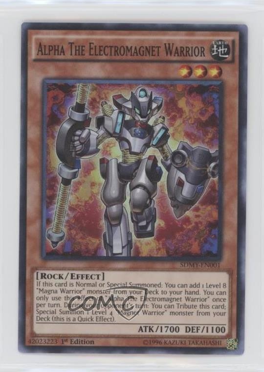 This card is a must-have for any Yu-Gi-Oh! collector or Magnet Warrior deck enthusiast! The 1st Edition print is crisp, and the artwork on Alpha the Electromagnet Warrior looks amazing. Perfect condition, fast shipping, and a great addition to my collection. Highly recommend!