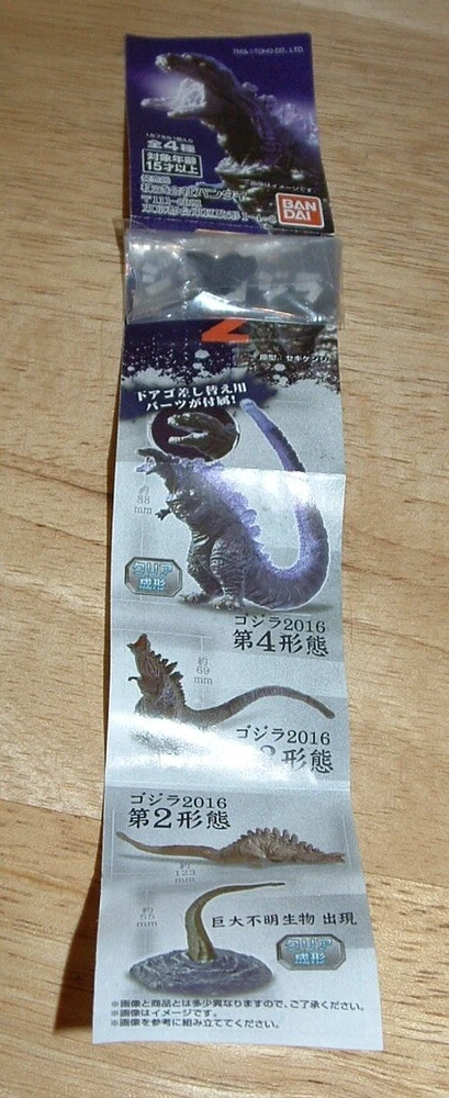 This set of 4 gashapon figures ..... about 3" tall .... was produced by Bandai in 2017. All figures are in excellent condition. The 4th form of Shin Godzilla comes with an alternate set of lower jaws. Tails are permanently attached to bodies. FREE SHIPPING in the USA. Payment is to be completed within 1 day after listings end. Thanks and Good Luck!! Listing and template services provided by inkFrog
