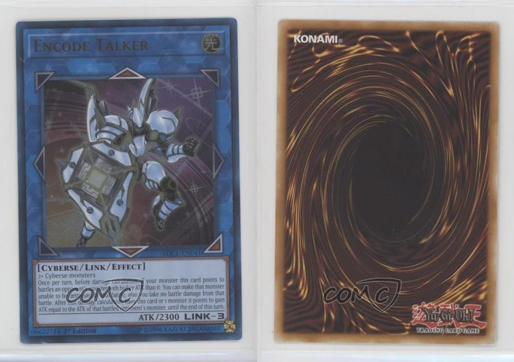 2017 Yu-Gi-Oh! Cyberse Link - Structure Deck [Base] - 1st Edition #SDCL-EN041 Encode Talker (UR) COMC Item: 152119477 - YuGiOh Card Search for more: 2017 Yu-Gi-Oh! Cyberse Link Search for more: 2017 Yu-Gi-Oh! Cyberse Link - Structure Deck [Base] - 1st Edition View all of our Listings Auctions Buy It Now About Us Located in the beautiful Pacific Northwest, COMC (Check Out My Cards) is the world's largest consignment service for trading card singles. More than 10,000 people have used our consignment service to list over 50 million trading cards. Find out how we can help you consign your items on eBay by contacting us through eBay messaging. COMC -- "The Safe & Easy Way to Buy & Sell" Raw Condition for Modern Cards Unless otherwise noted, raw modern cards are listed in Near Mint-Mint condition or better. A NM-MT card appears to be Mint at first glance, but upon closer inspection, may exhibit some of the following: minor print defects (e.g. roller marks, print line, dimple), minor scratches, slight edge wear, and slight corner wear. Centering is clearly visible in the images provided and does not factor into our condition assessment. Raw Condition for Vintage Cards Unless otherwise noted, raw vintage cards are listed in Excellent condition or better. An EX card may exhibit some of the following: minor rounding of corners, surface wear, print defects, light scratches, and slight edge wear/chipping. Centering is clearly visible in the images provided and does not factor into our condition assessment. Domestic Shipping Combined shipping for multiple items is available. To receive combined shipping, please ensure all desired items are in your eBay shopping cart before proceeding to checkout. eBay limits orders to 40 items per order. We automatically combine multiple orders placed on the same day. If you place multiple orders on the same day, please contact us to request a refund of applicable shipping costs. Signature confirmation may be required on invoices over $400. All cards are protected and shipped securely. International Shipping COMC offers eBay's International Shipping (EIS) for international orders under $2,500* (see country exceptions below). All duties and import fees are paid at checkout; in the rare event that there are additional import fees upon delivery, these are borne by the buyer. EIS packages route through a shipping hub in Erlanger, KY before shipping to their final destination. Please note that EIS does not allow for combined shipments. The shipping rates are determined by eBay and cannot be adjusted. *Maximum sale price exceptions: Colombia, Kuwait ($2,000); Taiwan ($1,539); Chile, Costa Rica, Guatemala, Honduras, Trinidad and Tobago ($1,000); Antigua and Barbuda, Aruba, Belize, Dominica, Grenada, Philippines, Saint Kitts and Nevis, Saint Lucia, Montserrat, Turks and Caicos Islands ($500); Dominican Republic, El Salvador ($200). Please request a shipping quote through eBay messaging for orders that exceed the maximum sale price supported by eBay's International Shipping. You will be responsible for all duties and import fees for international orders shipped outside the EIS. All cards are protected and shipped securely. Payment COMC does not accept offers on our cards through our eBay storefront. COMC utilizes eBay’s managed payments system. If you are experiencing difficulties making a payment, please contact eBay for assistance. Return Policy Returns are only accepted on the rare occasion the item is not as described. If you are making a return, please initiate the return process through eBay so a mailing label can be provided for you. Prior to listing, our expert team carefully assessed this item to represent it accurately. Please review the description and high-definition images prior to purchasing to ensure this item meets your satisfaction. We welcome you to contact us if you have further questions about this item. Trust and Integrity COMC carefully assesses each item consigned to us to prevent fraudulent items from entering the marketplace. If you believe an item offered on COMC may be fraudulent, please contact us with details so we can investigate the issue. Items we determine are outside our supported items policy may be removed. Last Modified: 5/13/2025 1:46:09 PM PDT