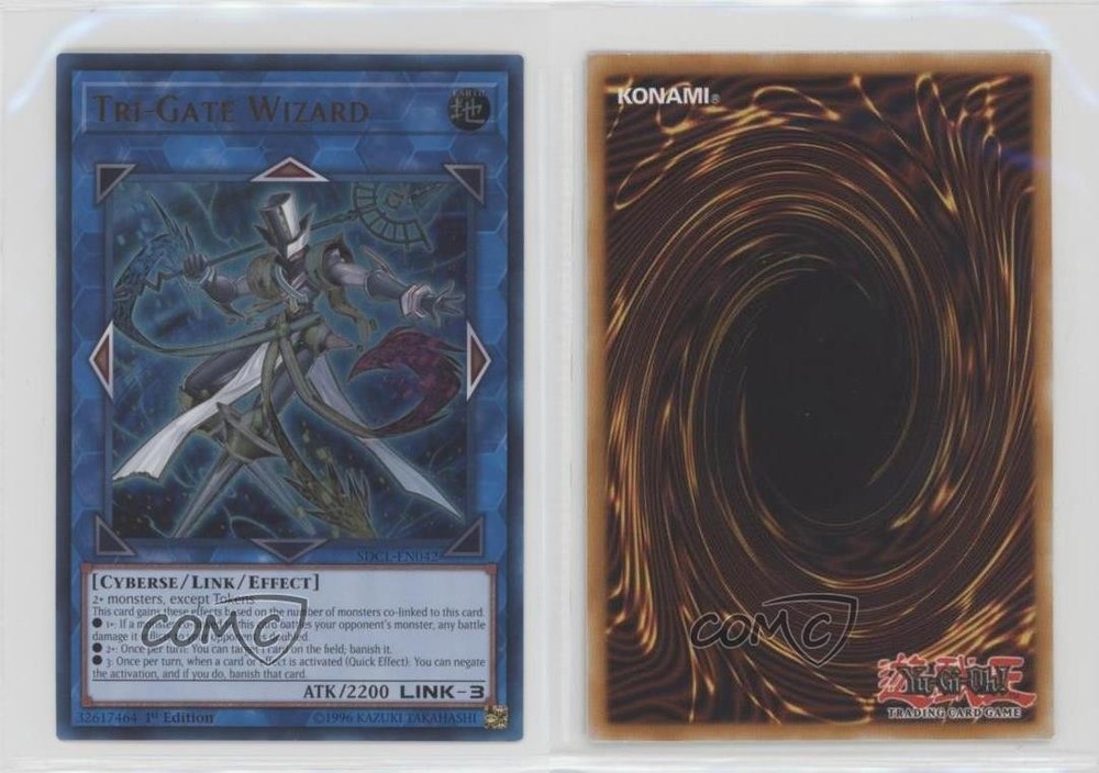 2017 Yu-Gi-Oh! Cyberse Link - Structure Deck [Base] - 1st Edition #SDCL-EN042 Tri-Gate Wizard COMC Item: 168294844 - YuGiOh Card Search for more: 2017 Yu-Gi-Oh! Cyberse Link Search for more: 2017 Yu-Gi-Oh! Cyberse Link - Structure Deck [Base] - 1st Edition View all of our Listings Auctions Buy It Now About Us Located in the beautiful Pacific Northwest, COMC (Check Out My Cards) is the world's largest consignment service for trading card singles. More than 10,000 people have used our consignment service to list over 50 million trading cards. Find out how we can help you consign your items on eBay by contacting us through eBay messaging. COMC -- "The Safe & Easy Way to Buy & Sell" Raw Condition for Modern Cards Unless otherwise noted, raw modern cards are listed in Near Mint-Mint condition or better. A NM-MT card appears to be Mint at first glance, but upon closer inspection, may exhibit some of the following: minor print defects (e.g. roller marks, print line, dimple), minor scratches, slight edge wear, and slight corner wear. Centering is clearly visible in the images provided and does not factor into our condition assessment. Raw Condition for Vintage Cards Unless otherwise noted, raw vintage cards are listed in Excellent condition or better. An EX card may exhibit some of the following: minor rounding of corners, surface wear, print defects, light scratches, and slight edge wear/chipping. Centering is clearly visible in the images provided and does not factor into our condition assessment. Domestic Shipping Combined shipping for multiple items is available. To receive combined shipping, please ensure all desired items are in your eBay shopping cart before proceeding to checkout. eBay limits orders to 40 items per order. We automatically combine multiple orders placed on the same day. If you place multiple orders on the same day, please contact us to request a refund of applicable shipping costs. Signature confirmation may be required on invoices over $400. All cards are protected and shipped securely. International Shipping COMC offers eBay's International Shipping (EIS) for international orders under $2,500* (see country exceptions below). All duties and import fees are paid at checkout; in the rare event that there are additional import fees upon delivery, these are borne by the buyer. EIS packages route through a shipping hub in Erlanger, KY before shipping to their final destination. Please note that EIS does not allow for combined shipments. The shipping rates are determined by eBay and cannot be adjusted. *Maximum sale price exceptions: Colombia, Kuwait ($2,000); Taiwan ($1,539); Chile, Costa Rica, Guatemala, Honduras, Trinidad and Tobago ($1,000); Antigua and Barbuda, Aruba, Belize, Dominica, Grenada, Philippines, Saint Kitts and Nevis, Saint Lucia, Montserrat, Turks and Caicos Islands ($500); Dominican Republic, El Salvador ($200). Please request a shipping quote through eBay messaging for orders that exceed the maximum sale price supported by eBay's International Shipping. You will be responsible for all duties and import fees for international orders shipped outside the EIS. All cards are protected and shipped securely. Payment COMC does not accept offers on our cards through our eBay storefront. COMC utilizes eBay’s managed payments system. If you are experiencing difficulties making a payment, please contact eBay for assistance. Return Policy Returns are only accepted on the rare occasion the item is not as described. If you are making a return, please initiate the return process through eBay so a mailing label can be provided for you. Prior to listing, our expert team carefully assessed this item to represent it accurately. Please review the description and high-definition images prior to purchasing to ensure this item meets your satisfaction. We welcome you to contact us if you have further questions about this item. Trust and Integrity COMC carefully assesses each item consigned to us to prevent fraudulent items from entering the marketplace. If you believe an item offered on COMC may be fraudulent, please contact us with details so we can investigate the issue. Items we determine are outside our supported items policy may be removed. Last Modified: 6/21/2025 5:51:38 PM PDT