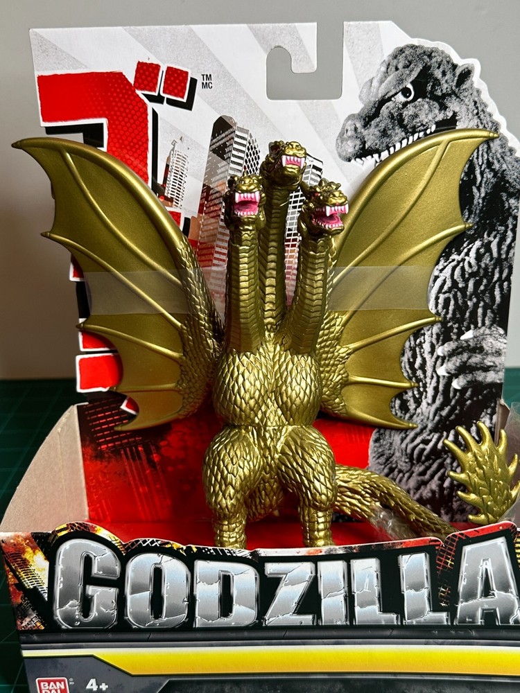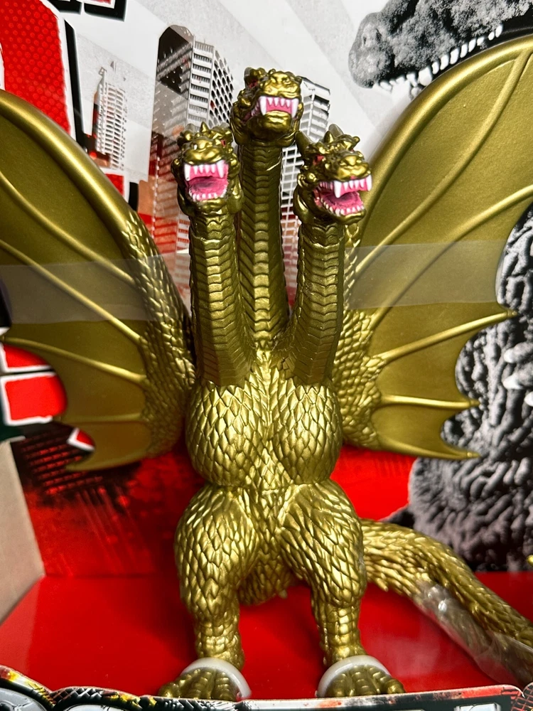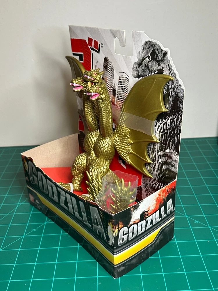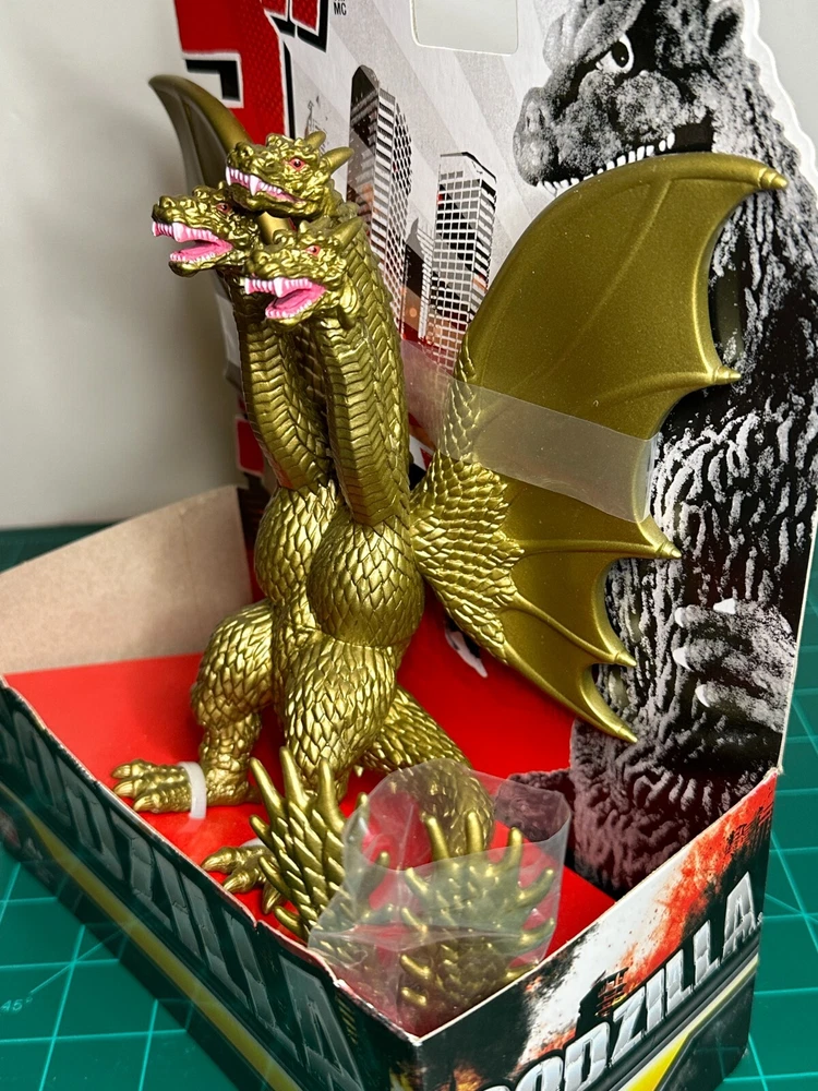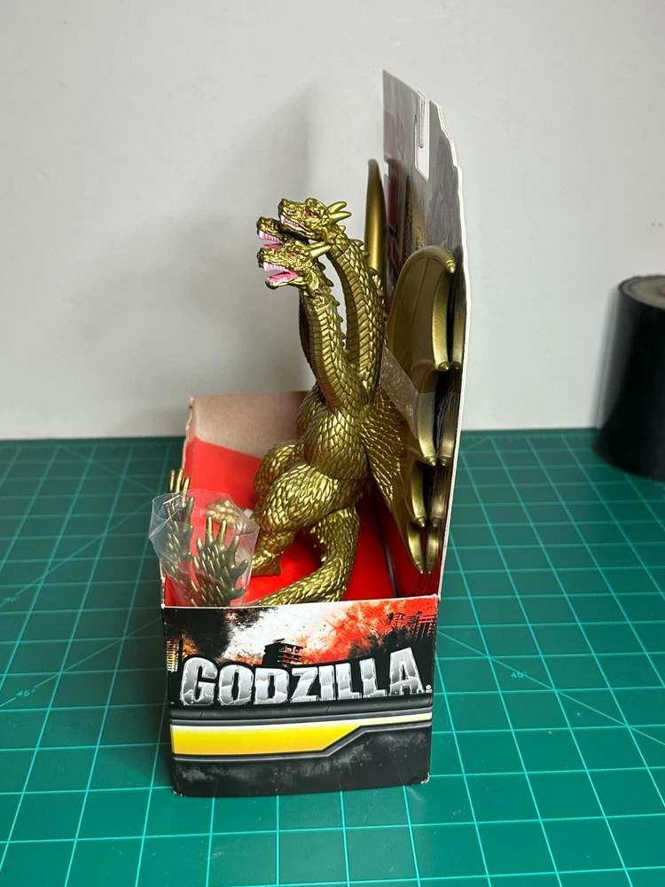 New in box. Box may have minor shelf wear or slight bends from attached character. Box is in very good condition otherwise. See photos and ask for more if you need them. I have others in the series I am posting. King Ghidorah is about 6-7". Still has protective plastic sleeve on tail.