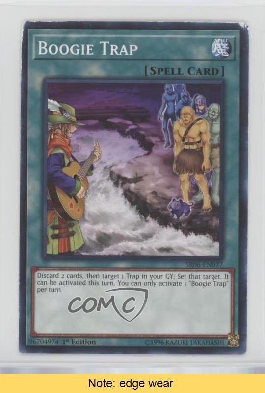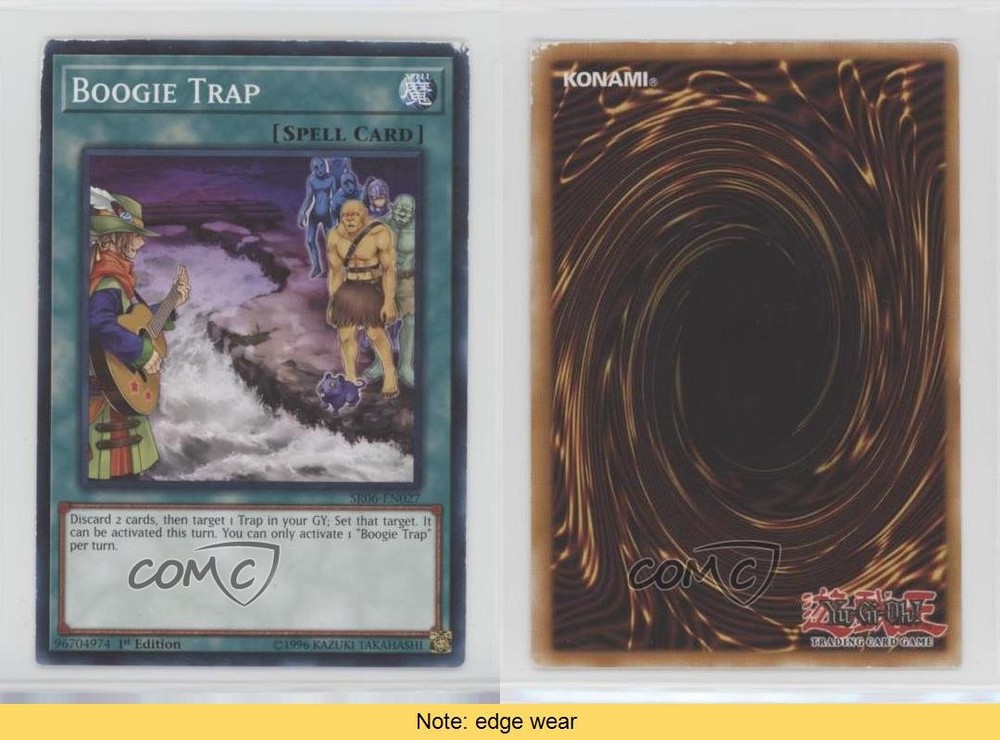2018 Yu-Gi-Oh! Lair of Darkness - Structure Deck [Base] - 1st Edition #SR06-EN027 Boogie Trap COMC Item: 106586961 CONDITION NOTE: Edge wear - YuGiOh Card Search for more: 2018 Yu-Gi-Oh! Lair of Darkness Search for more: 2018 Yu-Gi-Oh! Lair of Darkness - Structure Deck [Base] - 1st Edition View all of our Listings Auctions Buy It Now About Us Located in the beautiful Pacific Northwest, COMC (Check Out My Cards) is the world's largest consignment service for trading card singles. More than 10,000 people have used our consignment service to list over 50 million trading cards. Find out how we can help you consign your items on eBay by contacting us through eBay messaging. COMC -- "The Safe & Easy Way to Buy & Sell" Raw Condition for Modern Cards Unless otherwise noted, raw modern cards are listed in Near Mint-Mint condition or better. A NM-MT card appears to be Mint at first glance, but upon closer inspection, may exhibit some of the following: minor print defects (e.g. roller marks, print line, dimple), minor scratches, slight edge wear, and slight corner wear. Centering is clearly visible in the images provided and does not factor into our condition assessment. Raw Condition for Vintage Cards Unless otherwise noted, raw vintage cards are listed in Excellent condition or better. An EX card may exhibit some of the following: minor rounding of corners, surface wear, print defects, light scratches, and slight edge wear/chipping. Centering is clearly visible in the images provided and does not factor into our condition assessment. Domestic Shipping Combined shipping for multiple items is available. To receive combined shipping, please ensure all desired items are in your eBay shopping cart before proceeding to checkout. eBay limits orders to 40 items per order. We automatically combine multiple orders placed on the same day. If you place multiple orders on the same day, please contact us to request a refund of applicable shipping costs. Signature confirmation may be required on invoices over $400. All cards are protected and shipped securely. International Shipping COMC offers eBay's International Shipping (EIS) for international orders under $2,500* (see country exceptions below). All duties and import fees are paid at checkout; in the rare event that there are additional import fees upon delivery, these are borne by the buyer. EIS packages route through a shipping hub in Erlanger, KY before shipping to their final destination. Please note that EIS does not allow for combined shipments. The shipping rates are determined by eBay and cannot be adjusted. *Maximum sale price exceptions: Colombia, Kuwait ($2,000); Taiwan ($1,539); Chile, Costa Rica, Guatemala, Honduras, Trinidad and Tobago ($1,000); Antigua and Barbuda, Aruba, Belize, Dominica, Grenada, Philippines, Saint Kitts and Nevis, Saint Lucia, Montserrat, Turks and Caicos Islands ($500); Dominican Republic, El Salvador ($200). Please request a shipping quote through eBay messaging for orders that exceed the maximum sale price supported by eBay's International Shipping. You will be responsible for all duties and import fees for international orders shipped outside the EIS. All cards are protected and shipped securely. Payment COMC does not accept offers on our cards through our eBay storefront. COMC utilizes eBay’s managed payments system. If you are experiencing difficulties making a payment, please contact eBay for assistance. Return Policy Returns are only accepted on the rare occasion the item is not as described. If you are making a return, please initiate the return process through eBay so a mailing label can be provided for you. Prior to listing, our expert team carefully assessed this item to represent it accurately. Please review the description and high-definition images prior to purchasing to ensure this item meets your satisfaction. We welcome you to contact us if you have further questions about this item. Trust and Integrity COMC carefully assesses each item consigned to us to prevent fraudulent items from entering the marketplace. If you believe an item offered on COMC may be fraudulent, please contact us with details so we can investigate the issue. Items we determine are outside our supported items policy may be removed. Last Modified: 6/21/2025 3:06:33 AM PDT