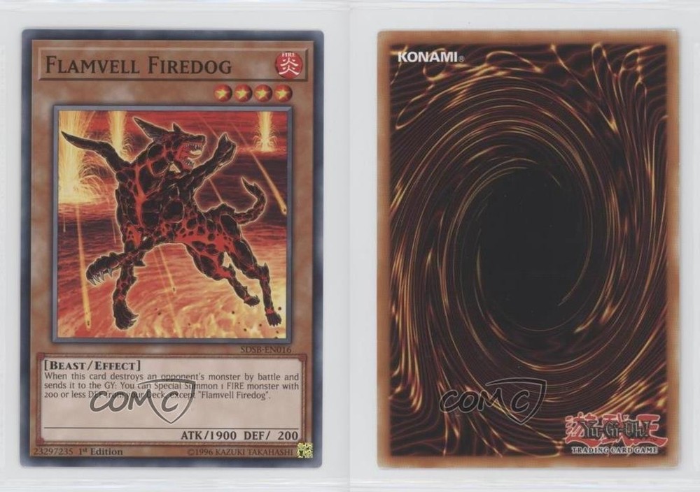 2019 Yu-Gi-Oh! Structure Deck: Soulburner - [Base] - 1st Edition #SDSB-EN016 Flamevell Firedog COMC Item: 114126357 - YuGiOh Card Search for more: 2019 Yu-Gi-Oh! Structure Deck: Soulburner Search for more: 2019 Yu-Gi-Oh! Structure Deck: Soulburner - [Base] - 1st Edition View all of our Listings Auctions Buy It Now About Us Located in the beautiful Pacific Northwest, COMC (Check Out My Cards) is the world's largest consignment service for trading card singles. More than 10,000 people have used our consignment service to list over 50 million trading cards. Find out how we can help you consign your items on eBay by contacting us through eBay messaging. COMC -- "The Safe & Easy Way to Buy & Sell" Raw Condition for Modern Cards Unless otherwise noted, raw modern cards are listed in Near Mint-Mint condition or better. A NM-MT card appears to be Mint at first glance, but upon closer inspection, may exhibit some of the following: minor print defects (e.g. roller marks, print line, dimple), minor scratches, slight edge wear, and slight corner wear. Centering is clearly visible in the images provided and does not factor into our condition assessment. Raw Condition for Vintage Cards Unless otherwise noted, raw vintage cards are listed in Excellent condition or better. An EX card may exhibit some of the following: minor rounding of corners, surface wear, print defects, light scratches, and slight edge wear/chipping. Centering is clearly visible in the images provided and does not factor into our condition assessment. Domestic Shipping Combined shipping for multiple items is available. To receive combined shipping, please ensure all desired items are in your eBay shopping cart before proceeding to checkout. eBay limits orders to 40 items per order. We automatically combine multiple orders placed on the same day. If you place multiple orders on the same day, please contact us to request a refund of applicable shipping costs. Signature confirmation may be required on invoices over $400. All cards are protected and shipped securely. International Shipping COMC offers eBay's International Shipping (EIS) for international orders under $2,500* (see country exceptions below). All duties and import fees are paid at checkout; in the rare event that there are additional import fees upon delivery, these are borne by the buyer. EIS packages route through a shipping hub in Erlanger, KY before shipping to their final destination. Please note that EIS does not allow for combined shipments. The shipping rates are determined by eBay and cannot be adjusted. *Maximum sale price exceptions: Colombia, Kuwait ($2,000); Taiwan ($1,539); Chile, Costa Rica, Guatemala, Honduras, Trinidad and Tobago ($1,000); Antigua and Barbuda, Aruba, Belize, Dominica, Grenada, Philippines, Saint Kitts and Nevis, Saint Lucia, Montserrat, Turks and Caicos Islands ($500); Dominican Republic, El Salvador ($200). Please request a shipping quote through eBay messaging for orders that exceed the maximum sale price supported by eBay's International Shipping. You will be responsible for all duties and import fees for international orders shipped outside the EIS. All cards are protected and shipped securely. Payment COMC does not accept offers on our cards through our eBay storefront. COMC utilizes eBay’s managed payments system. If you are experiencing difficulties making a payment, please contact eBay for assistance. Return Policy Returns are only accepted on the rare occasion the item is not as described. If you are making a return, please initiate the return process through eBay so a mailing label can be provided for you. Prior to listing, our expert team carefully assessed this item to represent it accurately. Please review the description and high-definition images prior to purchasing to ensure this item meets your satisfaction. We welcome you to contact us if you have further questions about this item. Trust and Integrity COMC carefully assesses each item consigned to us to prevent fraudulent items from entering the marketplace. If you believe an item offered on COMC may be fraudulent, please contact us with details so we can investigate the issue. Items we determine are outside our supported items policy may be removed. Last Modified: 6/20/2025 11:11:44 AM PDT