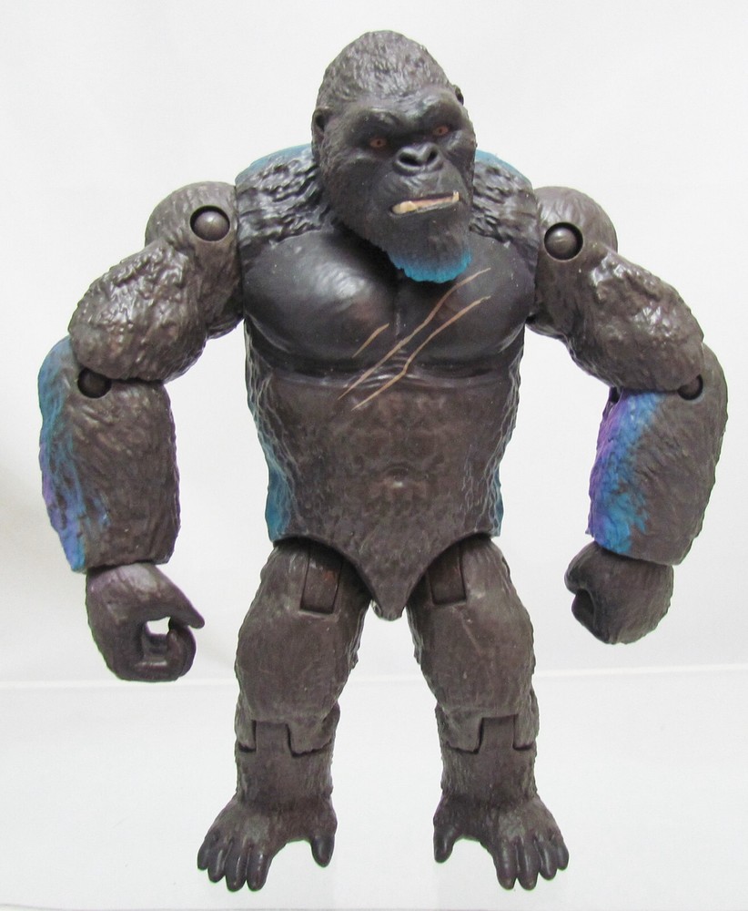 2020 Legendary & WBEI Playmates - Hong Kong Battle **King Kong Action Figure** This is the "Hong Kong Battle" version of King Kong -- with the blue and purple tint to his arms. Figure only, no other weapons or accessories. Unfortunately, he is MISSING the piece that would have covered his battle wound, but he looks good without in my opinion! In gently used but not abused condition. Standing in at about 6" tall, he is copyright 2020 by Legendary & WBEI Playmates. Part of the Monsterverse collection and based on the movie Godzilla vs. Kong. Fully articulated at shoulders, elbows, hips, knees. Head turns just a little from side to side. Recommended for ages 4 and up. Non-Smoking Home