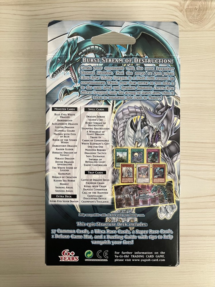 Hey there! Thanks for stopping by RookieMasterBox, a small, family-owned and operated startup. Check out my other items on my store with more to come! Stay tuned. To interested buyers, rest assured, when you buy from me, you're getting exactly what you see. I take pride in providing accurate descriptions, clear photos, and being completely transparent about my items' condition. I'm dedicated to ensuring a smooth and trustworthy experience for you. Feel confident shopping with me – your satisfaction is my top priority! Shoot me a message if you have any questions. Thanks, Rookiemasterbox **Title**: Yu-Gi-Oh! Saga of Blue-Eyes White Dragon Structure Deck - English Edition, 41 Cards **Description**: Dive into the mystical world of Yu-Gi-Oh! with the iconic **Saga of Blue-Eyes White Dragon Structure Deck**. Whether you're a collector, a seasoned duelist, or just getting started, this deck is a must-have for anyone looking to harness the power of the legendary Blue-Eyes White Dragon! **Item Details**: - **Condition**: [New] - Box is damaged. - **Release Date**: September 13, 2013 (North America). Reprinted in 2020. - **Number of Cards**: 41 cards in total - 2 Ultra Rares: Blue-Eyes White Dragon and Azure-Eyes Silver Dragon - 2 Super Rares: Maiden with Eyes of Blue and Flamvell Guard - 37 Commons: Various dragon and support cards - **Main Cards**: - Blue-Eyes White Dragon - Azure-Eyes Silver Dragon - Maiden with Eyes of Blue - Rabidragon - Alexandrite Dragon - Luster Dragon - Flamvell Guard - **Additional Items**: - Rulebook - Dueling Guide - Playmat **Features**: - Powerful and versatile deck centered around the iconic Blue-Eyes White Dragon. - Perfect for both new and experienced players. - Includes a variety of dragon and support cards to enhance your dueling experience. Don't miss out on this chance to own a piece of Yu-Gi-Oh! history. Add the **Saga of Blue-Eyes White Dragon Structure Deck** to your collection today!