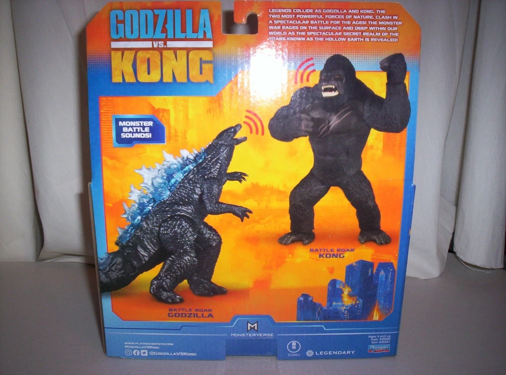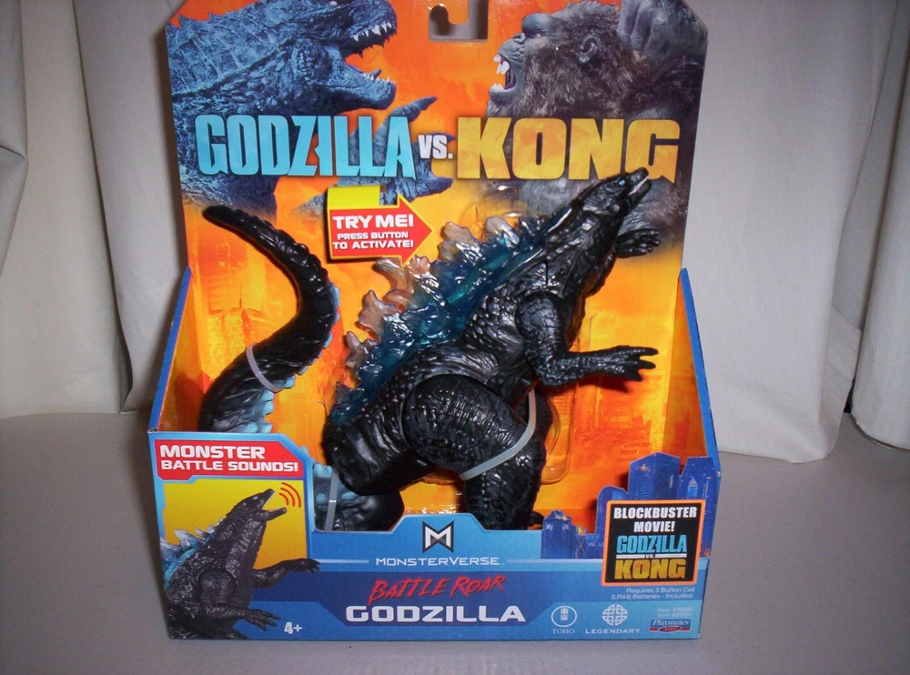 This auction is for a 2021 Playmates Godzilla vs. Kong, Monster Verse BATTLE ROAR GODZILLA. Monster Battle Sounds! It is new! **NOTE: It takes 3 button cell LR44 batteries, they are included, but may not work due to age**