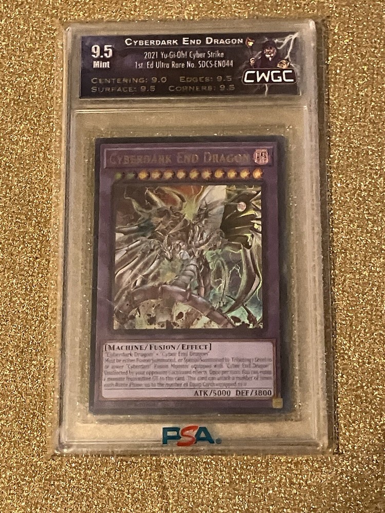 2021 YU-GI-OH! 1ST ED CYBERDARK END DRAGON SD: CYBER STRIKE card wizard grading company Graded 9.5 Gem MINT See photos for item Condition Sold as-is, exactly what the item description and title describes. All sales are final, NO returns Stored in non-smoke environment We use 100% repurposed material in all packing for its second life. Feel confident about your purchase today in safeguarding our Environment Item is packaged and carefully wrapped when shipped. Please contact with any questions Thank you and it’s time to duel!
