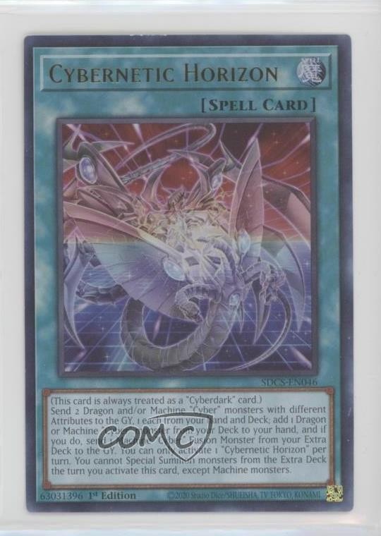 2021 Yu-Gi-Oh! - Structure Deck: Cyber Strike - [Base] - 1st Edition #SDCS-EN046 Cybernetic Horizon (UR) COMC Item: 145802644 - YuGiOh Card Search for more: 2021 Yu-Gi-Oh! - Structure Deck: Cyber Strike Search for more: 2021 Yu-Gi-Oh! - Structure Deck: Cyber Strike - [Base] - 1st Edition View all of our Listings Auctions Buy It Now About Us Located in the beautiful Pacific Northwest, COMC (Check Out My Cards) is the world's largest consignment service for trading card singles. More than 10,000 people have used our consignment service to list over 50 million trading cards. Find out how we can help you consign your items on eBay by contacting us through eBay messaging. COMC -- "The Safe & Easy Way to Buy & Sell" Raw Condition for Modern Cards Unless otherwise noted, raw modern cards are listed in Near Mint-Mint condition or better. A NM-MT card appears to be Mint at first glance, but upon closer inspection, may exhibit some of the following: minor print defects (e.g. roller marks, print line, dimple), minor scratches, slight edge wear, and slight corner wear. Centering is clearly visible in the images provided and does not factor into our condition assessment. Raw Condition for Vintage Cards Unless otherwise noted, raw vintage cards are listed in Excellent condition or better. An EX card may exhibit some of the following: minor rounding of corners, surface wear, print defects, light scratches, and slight edge wear/chipping. Centering is clearly visible in the images provided and does not factor into our condition assessment. Domestic Shipping Combined shipping for multiple items is available. To receive combined shipping, please ensure all desired items are in your eBay shopping cart before proceeding to checkout. eBay limits orders to 40 items per order. We automatically combine multiple orders placed on the same day. If you place multiple orders on the same day, please contact us to request a refund of applicable shipping costs. Signature confirmation may be required on invoices over $400. All cards are protected and shipped securely. International Shipping COMC offers eBay's International Shipping (EIS) for international orders under $2,500* (see country exceptions below). All duties and import fees are paid at checkout; in the rare event that there are additional import fees upon delivery, these are borne by the buyer. EIS packages route through a shipping hub in Erlanger, KY before shipping to their final destination. Please note that EIS does not allow for combined shipments. The shipping rates are determined by eBay and cannot be adjusted. *Maximum sale price exceptions: Colombia, Kuwait ($2,000); Taiwan ($1,539); Chile, Costa Rica, Guatemala, Honduras, Trinidad and Tobago ($1,000); Antigua and Barbuda, Aruba, Belize, Dominica, Grenada, Philippines, Saint Kitts and Nevis, Saint Lucia, Montserrat, Turks and Caicos Islands ($500); Dominican Republic, El Salvador ($200). Please request a shipping quote through eBay messaging for orders that exceed the maximum sale price supported by eBay's International Shipping. You will be responsible for all duties and import fees for international orders shipped outside the EIS. All cards are protected and shipped securely. Payment COMC does not accept offers on our cards through our eBay storefront. COMC utilizes eBay’s managed payments system. If you are experiencing difficulties making a payment, please contact eBay for assistance. Return Policy Returns are only accepted on the rare occasion the item is not as described. If you are making a return, please initiate the return process through eBay so a mailing label can be provided for you. Prior to listing, our expert team carefully assessed this item to represent it accurately. Please review the description and high-definition images prior to purchasing to ensure this item meets your satisfaction. We welcome you to contact us if you have further questions about this item. Trust and Integrity COMC carefully assesses each item consigned to us to prevent fraudulent items from entering the marketplace. If you believe an item offered on COMC may be fraudulent, please contact us with details so we can investigate the issue. Items we determine are outside our supported items policy may be removed. Last Modified: 6/24/2025 11:48:19 AM PDT