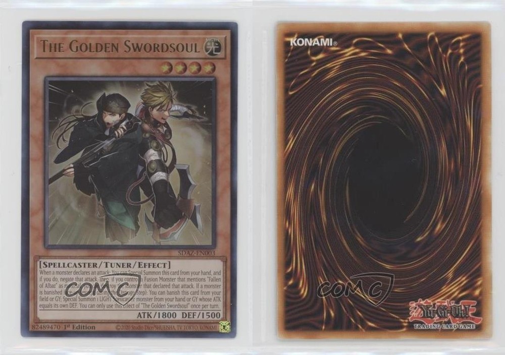 2022 Yu-Gi-Oh! Structure Deck: Albaz Strike - [Base] - 1st Edition #SDAZ-EN003 UR - The Golden Swordsoul COMC Item: 134129081 - YuGiOh Card Search for more: 2022 Yu-Gi-Oh! Structure Deck: Albaz Strike Search for more: 2022 Yu-Gi-Oh! Structure Deck: Albaz Strike - [Base] - 1st Edition View all of our Listings Auctions Buy It Now About Us Located in the beautiful Pacific Northwest, COMC (Check Out My Cards) is the world's largest consignment service for trading card singles. More than 10,000 people have used our consignment service to list over 50 million trading cards. Find out how we can help you consign your items on eBay by contacting us through eBay messaging. COMC -- "The Safe & Easy Way to Buy & Sell" Raw Condition for Modern Cards Unless otherwise noted, raw modern cards are listed in Near Mint-Mint condition or better. A NM-MT card appears to be Mint at first glance, but upon closer inspection, may exhibit some of the following: minor print defects (e.g. roller marks, print line, dimple), minor scratches, slight edge wear, and slight corner wear. Centering is clearly visible in the images provided and does not factor into our condition assessment. Raw Condition for Vintage Cards Unless otherwise noted, raw vintage cards are listed in Excellent condition or better. An EX card may exhibit some of the following: minor rounding of corners, surface wear, print defects, light scratches, and slight edge wear/chipping. Centering is clearly visible in the images provided and does not factor into our condition assessment. Domestic Shipping Combined shipping for multiple items is available. To receive combined shipping, please ensure all desired items are in your eBay shopping cart before proceeding to checkout. eBay limits orders to 40 items per order. We automatically combine multiple orders placed on the same day. If you place multiple orders on the same day, please contact us to request a refund of applicable shipping costs. Signature confirmation may be required on invoices over $400. All cards are protected and shipped securely. International Shipping COMC offers eBay's International Shipping (EIS) for international orders under $2,500* (see country exceptions below). All duties and import fees are paid at checkout; in the rare event that there are additional import fees upon delivery, these are borne by the buyer. EIS packages route through a shipping hub in Erlanger, KY before shipping to their final destination. Please note that EIS does not allow for combined shipments. The shipping rates are determined by eBay and cannot be adjusted. *Maximum sale price exceptions: Colombia, Kuwait ($2,000); Taiwan ($1,539); Chile, Costa Rica, Guatemala, Honduras, Trinidad and Tobago ($1,000); Antigua and Barbuda, Aruba, Belize, Dominica, Grenada, Philippines, Saint Kitts and Nevis, Saint Lucia, Montserrat, Turks and Caicos Islands ($500); Dominican Republic, El Salvador ($200). Please request a shipping quote through eBay messaging for orders that exceed the maximum sale price supported by eBay's International Shipping. You will be responsible for all duties and import fees for international orders shipped outside the EIS. All cards are protected and shipped securely. Payment COMC does not accept offers on our cards through our eBay storefront. COMC utilizes eBay’s managed payments system. If you are experiencing difficulties making a payment, please contact eBay for assistance. Return Policy Returns are only accepted on the rare occasion the item is not as described. If you are making a return, please initiate the return process through eBay so a mailing label can be provided for you. Prior to listing, our expert team carefully assessed this item to represent it accurately. Please review the description and high-definition images prior to purchasing to ensure this item meets your satisfaction. We welcome you to contact us if you have further questions about this item. Trust and Integrity COMC carefully assesses each item consigned to us to prevent fraudulent items from entering the marketplace. If you believe an item offered on COMC may be fraudulent, please contact us with details so we can investigate the issue. Items we determine are outside our supported items policy may be removed. Last Modified: 6/19/2025 5:44:17 PM PDT