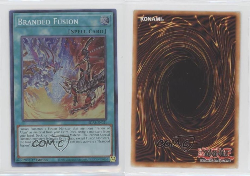 2022 Yu-Gi-Oh! Structure Deck: Albaz Strike - [Base] - 1st Edition #SDAZ-EN021 SR - Branded Fusion COMC Item: 137622083 - YuGiOh Card Search for more: 2022 Yu-Gi-Oh! Structure Deck: Albaz Strike Search for more: 2022 Yu-Gi-Oh! Structure Deck: Albaz Strike - [Base] - 1st Edition View all of our Listings Auctions Buy It Now About Us Located in the beautiful Pacific Northwest, COMC (Check Out My Cards) is the world's largest consignment service for trading card singles. More than 10,000 people have used our consignment service to list over 50 million trading cards. Find out how we can help you consign your items on eBay by contacting us through eBay messaging. COMC -- "The Safe & Easy Way to Buy & Sell" Raw Condition for Modern Cards Unless otherwise noted, raw modern cards are listed in Near Mint-Mint condition or better. A NM-MT card appears to be Mint at first glance, but upon closer inspection, may exhibit some of the following: minor print defects (e.g. roller marks, print line, dimple), minor scratches, slight edge wear, and slight corner wear. Centering is clearly visible in the images provided and does not factor into our condition assessment. Raw Condition for Vintage Cards Unless otherwise noted, raw vintage cards are listed in Excellent condition or better. An EX card may exhibit some of the following: minor rounding of corners, surface wear, print defects, light scratches, and slight edge wear/chipping. Centering is clearly visible in the images provided and does not factor into our condition assessment. Domestic Shipping Combined shipping for multiple items is available. To receive combined shipping, please ensure all desired items are in your eBay shopping cart before proceeding to checkout. eBay limits orders to 40 items per order. We automatically combine multiple orders placed on the same day. If you place multiple orders on the same day, please contact us to request a refund of applicable shipping costs. Signature confirmation may be required on invoices over $400. All cards are protected and shipped securely. International Shipping COMC offers eBay's International Shipping (EIS) for international orders under $2,500* (see country exceptions below). All duties and import fees are paid at checkout; in the rare event that there are additional import fees upon delivery, these are borne by the buyer. EIS packages route through a shipping hub in Erlanger, KY before shipping to their final destination. Please note that EIS does not allow for combined shipments. The shipping rates are determined by eBay and cannot be adjusted. *Maximum sale price exceptions: Colombia, Kuwait ($2,000); Taiwan ($1,539); Chile, Costa Rica, Guatemala, Honduras, Trinidad and Tobago ($1,000); Antigua and Barbuda, Aruba, Belize, Dominica, Grenada, Philippines, Saint Kitts and Nevis, Saint Lucia, Montserrat, Turks and Caicos Islands ($500); Dominican Republic, El Salvador ($200). Please request a shipping quote through eBay messaging for orders that exceed the maximum sale price supported by eBay's International Shipping. You will be responsible for all duties and import fees for international orders shipped outside the EIS. All cards are protected and shipped securely. Payment COMC does not accept offers on our cards through our eBay storefront. COMC utilizes eBay’s managed payments system. If you are experiencing difficulties making a payment, please contact eBay for assistance. Return Policy Returns are only accepted on the rare occasion the item is not as described. If you are making a return, please initiate the return process through eBay so a mailing label can be provided for you. Prior to listing, our expert team carefully assessed this item to represent it accurately. Please review the description and high-definition images prior to purchasing to ensure this item meets your satisfaction. We welcome you to contact us if you have further questions about this item. Trust and Integrity COMC carefully assesses each item consigned to us to prevent fraudulent items from entering the marketplace. If you believe an item offered on COMC may be fraudulent, please contact us with details so we can investigate the issue. Items we determine are outside our supported items policy may be removed. Last Modified: 6/19/2025 5:44:30 PM PDT
