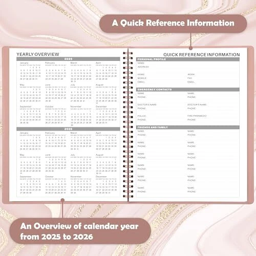 Return Policy Fast Delivery Trusted seller 2025 Appointment Book/Planner - Weekly Appointment Book 2025, January 2025 - December 2025, 8.26"x 10.7", Daily/Hourly Planner with Tabs, 15 Minutes, Wirebound - Pink Product Description APPOINTMENT BOOK: This stylish 2025 appointment book starts from January 2025 to December 2025, including 15 minutes appointments for every day. Please notice that the 2025 hourly planner is a weekly appointment book with printed 12 monthly tabs, with no separate monthly tabs because we printed the tabs on every page. CLASSIC DESIGN: Soft classic PU leather cover of this appointment book 2025 provides you with a comfortable carrying feeling and the wire-bound in this daily hourly planner helps keep pages secure for prolonged using and easy folding and carrying anyw. 15-MINUTE PLANNER: One week per two page spreads in column-style. Quarter-hourly appointment times for every day are from 7: 00 a.m to 8: 45 p.m and it starts from Monday to Sunday so you can arrange your life for school of working easily. What's more, t is a top goals section for every week, a section for weekly to-do list, a review part for every week in this daily planner 2025. PERFECT ORGANIZATION: T are 1 page of yearly overview for 2025 & 2026 | 1 page of major holidays of 2025-2027| 1 page for quick reference information. Besides, t are past and future months reference calendar on every weekly page in this weekly appointment planner. MAKES YOUR LIFE PRODUCTIVE: This appointment planner is the tool to make your life effective. Utilizing this weekly appointment book/planner 2025, you can stick down notes, ideas, meetings, appointments, etc. Shipping Returns Payment Shipping Shipping is FREE to all addresses other than APO/PO boxes in the lower 48 states. All our stock ships from US-based warehouses. Shipped via USPS or UPS (depending on location and package weight) Unless stated otherwise, all orders will ship within 24-72 hours of your payment being processed. Check our feedback to see the great reviews of FAST shipping we offer. Returns Seller does not accept returns Payment We currently accept payment via eBay managed payments only. Once payment is cleared, we will dispatch your shipment within 1-3 business days. Please refer to the "Shipping" tab for more information regarding shipping speed to your destination.
