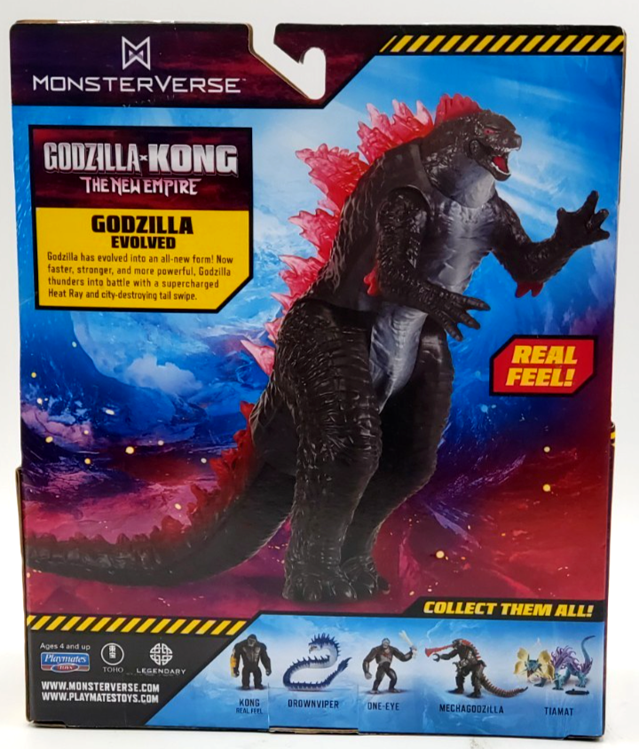 The product is a 2025 Godzilla x Kong: New Empire Godzilla evolved real feel action figure by Playmate. This toy is based on the popular theme of Godzilla and is recommended for children ages 4 and up, making it suitable for young fans of the iconic monster. With detailed design elements and a China manufacturing location, this action figure offers a realistic and engaging play experience for kids.