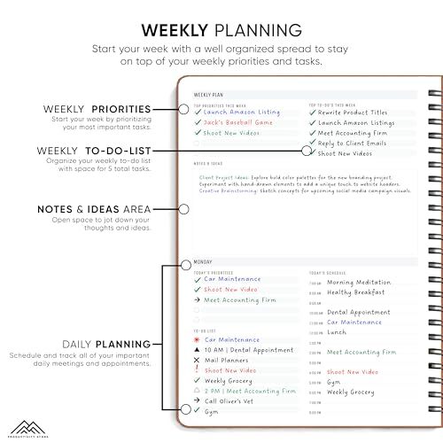 Return Policy Fast Delivery Trusted seller 2025 Planner. 8.5" x 11" Spiral-Bound Weekly, Monthly and Daily Planner - Organize All 52 Weeks - Increase Productivity and Get Organized - (Leather) Product Description Undated & Versatile: This undated spiral planner is more than just a calendar—it’s your all-in-one daily, weekly, and monthly planner. Designed to enhance productivity, this planner serves as a goal planner, to-do list organizer, and gratitude journal, ensuring you stay on top of your tasks throughout 2025 and beyond. Proven Planning System: We’ve crafted our spiral-bound planner based on successful strategies used by high achievers. Align your long-term goals with daily s using our unique workflow system. This planner empowers you to manage and accomplish your objectives, making it your ideal partner for growth and success. Plan, Track & Reflect: With dedicated sections for daily tasks, weekly reflections, and a mood tracker, this planner keeps you accountable and motivated. Experience our “Top 3” tasks feature, which prioritizes what matters most each day, ensuring you make the most of every moment. Ample Space for Your Needs: Our planner includes plenty of space for all your planning requirements—appointments, notes, and daily to-do lists. Enjoy 52 weeks and 365 days of thoughtfully designed pages that help you maintain focus and achieve your best results. Stylish Design & Quality Materials: Crafted with curated materials and handpicked colors, our brass spiral-bound planner is not only functional but also visually appealing. Its sleek design encourages you to dream bigger and strive for your best. 60-Day Money-Back Guarantee: At , we stand behind our products. If you’re not completely satisfied, just let us know, we will make it right! Shipping Returns Payment Shipping Shipping is FREE to all addresses other than APO/PO boxes in the lower 48 states. All our stock ships from US-based warehouses. Shipped via USPS or UPS (depending on location and package weight) Unless stated otherwise, all orders will ship within 24-72 hours of your payment being processed. Check our feedback to see the great reviews of FAST shipping we offer. Returns Seller does not accept returns Payment We currently accept payment via eBay managed payments only. Once payment is cleared, we will dispatch your shipment within 1-3 business days. Please refer to the "Shipping" tab for more information regarding shipping speed to your destination.