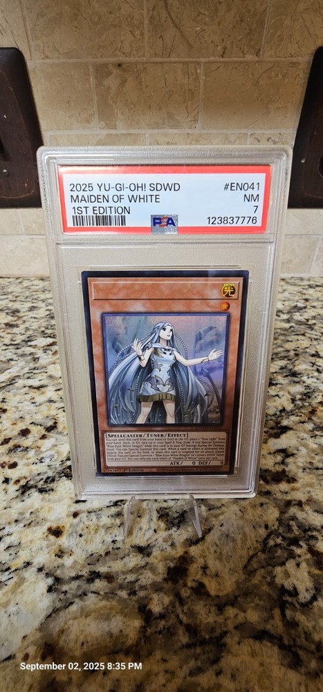 | Card Text | You can send this card from your hand or field to the GY; place 1 "True Light" from your hand, Deck, or GY, face-up in your Spell & Trap Zone. If you Special Summon "Blue-Eyes White Dragon" while this card is in your GY (except during the Damage Step): You can Special Summon this card. When a card or effect is activated that targets this card on the field, or when this card is targeted for an attack (Quick Effect): You can Special Summon 1 "Blue-Eyes White Dragon" or 1 Level 1 LIGHT Tuner from your GY. You can only use each effect of "Maiden of White" once per turn. |