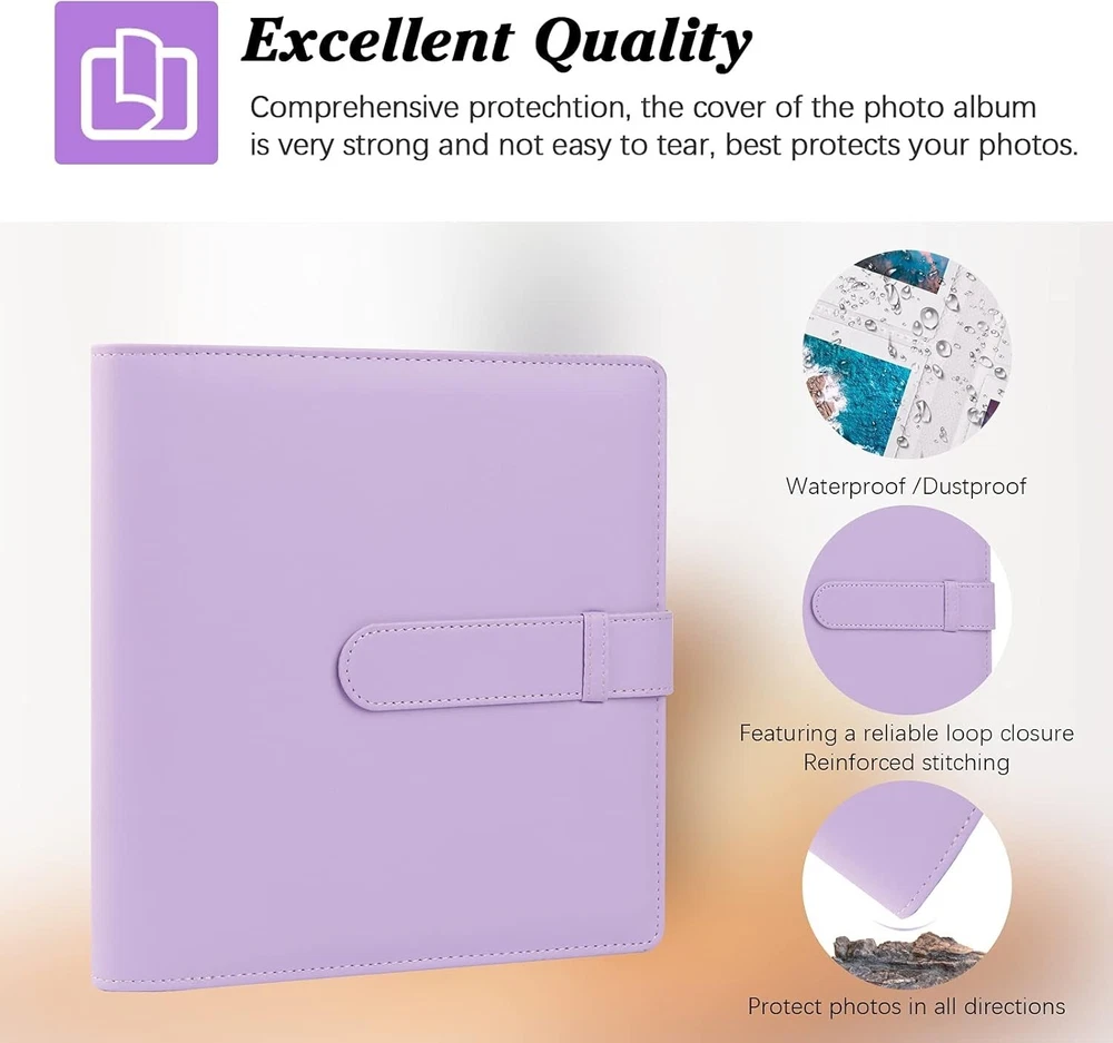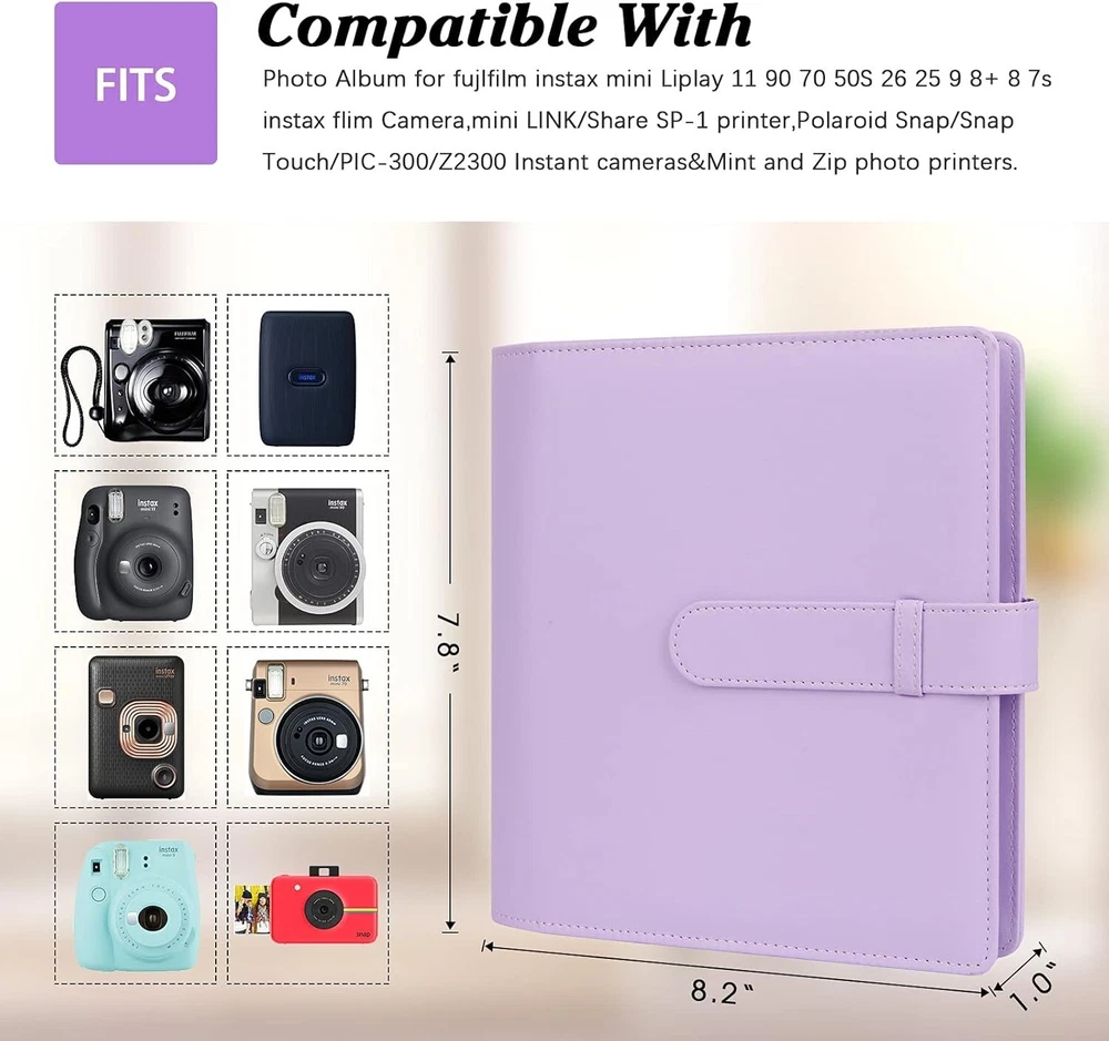 ✅【DESIGN FOR】: Compatible with photos taken by Fujifilm Instax Mini 1112 evo 9 8+ 8 90 70 26 25 7s 50s Camera, Instax Share SP-2 / SP-1 Printer, For Polaroid Snap / SnapTouch / PIC-300 Camera / ZIP Printer, Kodak Mini SHOT / Printomatic Camera / Mini / Mini 2 HD Printer, etc. ✅ [AMPLE STORAGE] : fit 256 photos with built-in 64 count 4 pockets sheets. Side loading pockets prevent cards from spilling out and keeps them safe during transportation. ✅ [COMPREHENSIVE PROTECTION] : The cover of the photo album is very strong and not easy to tear. With a lightweight padded layer built into each page the instax film photo albums protects your cards from scrapes and dings keeping them in mint condition.and is the best way to save and display photos. ✅ [SECURE] : Premium vegan leather cover and clear inner pockets are fashion and durable,Steady bonding between the cover and inner pages ensures high quality,Side loading pockets designed to keep your photos securely in place, Buckle design makes photo storage more secure. ✅ [MUITI-PURPOSES] : A light and soft photo album that can be carried with you. It can be used as daily photo storage, wedding guestbook, anniversary, Valentine's Day, Mother's Day, Father's Day, baby shower, birthday, Christmas, travel Records can also be used as instant gifts for the happy memories of writers and friends, and as decorations at home.