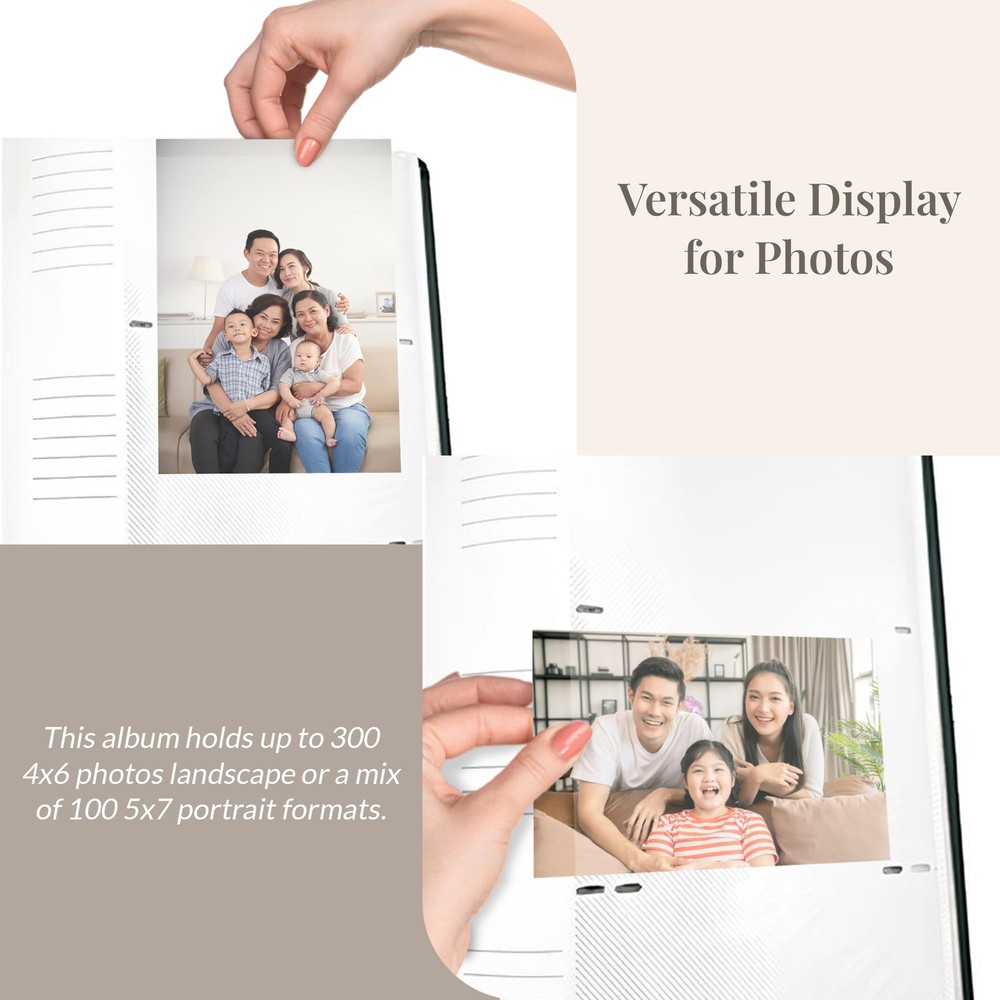 's 2-Pack Leather Photo Albums perfectly blend elegance and practicality. The classic bonded leather cover with an artistic raised spine adds a touch of sophistication to your photo collection. The deluxe faux suede lining offers luxurious safeguarding for all your keepsakes.Versatile Page DesignWith 50 double-sided, multi-format pages, this 9x13-inch album holds up to 300 4x6 photos or a mix of 100 5x7 and landscape formats. The bi-directional pages provide flexibility for arranging your photos, while the welded slots ensure each picture stays securely in place.Archival Quality for Long-Lasting PreservationYour memories deserve to be preserved in pristine condition. That's why our big photo album features acid-and-PVC-free pages with optically clear welded photo pockets, protecting your photos from fading, yellowing, or damage over time. Each page also includes lined memo space, allowing you to add personal notes, dates, or captions that bring your photos to life. These albums perfectly complement your picture frames (sold separately).Choose Your ColorBlack LeatherBrown LeatherBurgundy LeatherCaramel LeatherNavy LeatherPersonalize Your Photo Album with a Unique Cover DisplayMake your album truly yours with a customizable cover. The padded front cover includes a 4x6-inch window for showcasing a favorite photo, logo, or even a special message.Convenient Extra Storage for Your Digital MemoriesIn addition to storing your photos, this album offers an extra page designed for digital memories. The back of the album includes space for 2 CDs and 2 index cards, allowing you to keep digital copies or slideshows of your photos safely stored alongside your physical prints.Start creating a keepsake that will last for generations with an Photo Album! Capture Every Memory: Preserve all your cherished moments with these 2-pack photo albums. Measuring 9x13 inches, these photo albums for 4x6 photos hold up to 300 images, or 100 5x7 and landscape photos. Elegant Design Meets Durability: Wrapped in classical bonded leather with an artistic raised spine and deluxe faux suede lining, this photo album is visually stunning and built to last. Its rounded corners are designed to minimize crushing and damage. Versatile Display for Photos: With the bi-directional pages in our multi size photo album, you can easily arrange postcards, pictures, and other keepsakes of various sizes. Plus, the lined memo space allows you to add personal notes or dates. Archival Quality: The leather photo album includes 50 double-sided welded pages. The picture albums feature acid-and-PVC-free pages to ensure that your photos remain vibrant, clear, and protected from fading or discoloration over time. Album for Photos with Extra Storage: Create a personalized photo album by showcasing a favorite photo or special logo in the 4x6-inch cover window. An additional back page offers space for 2 CDs and 2 index cards, keeping your memories neatly organized.